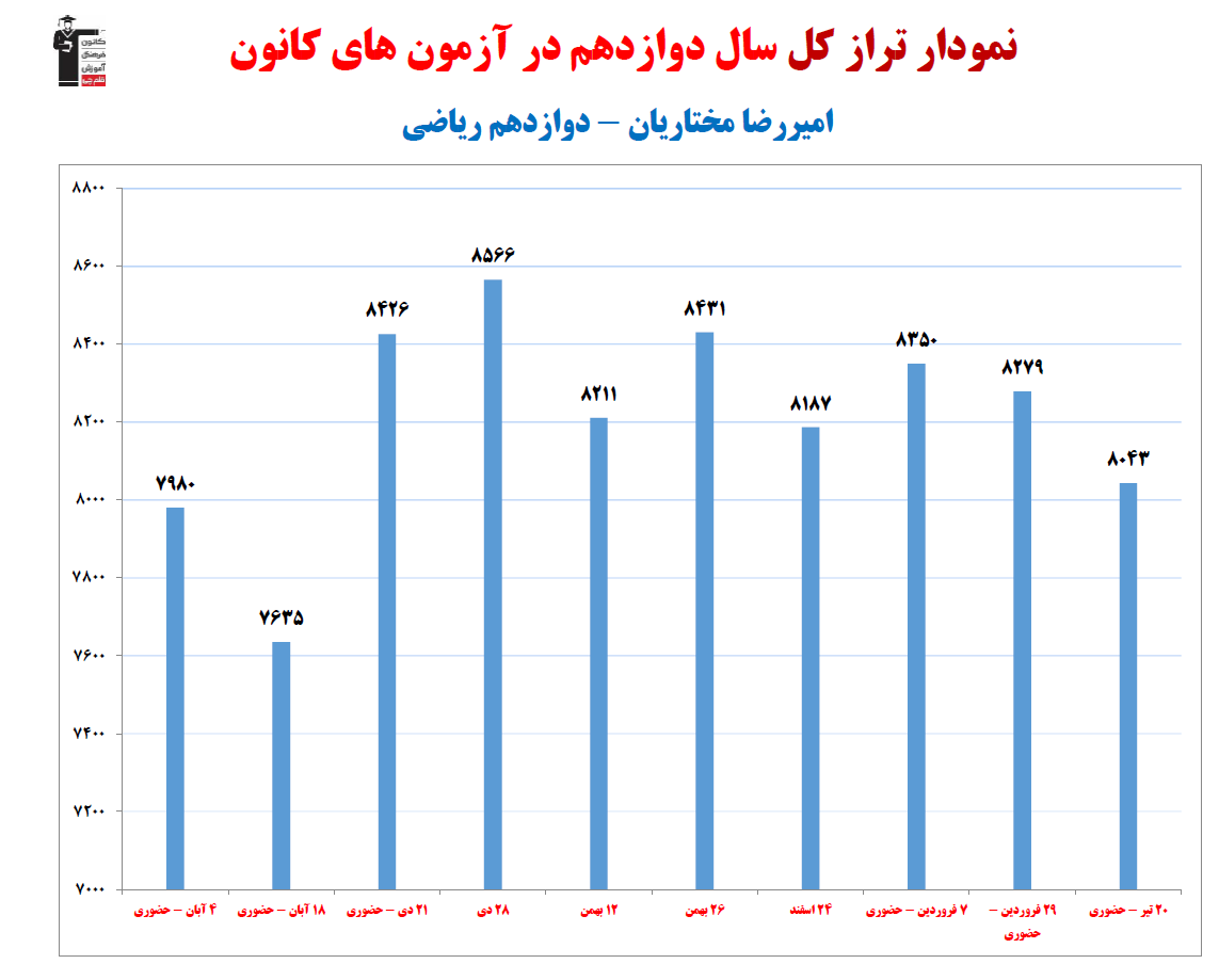 نمودار پیشرفت میانگین تراز در پایههای مختلف، نمودار تراز کل، عملکرد آزمونهای سال دوازدهم و شروع از تابستان و تراز آزمون های تابستان، کارنامههای مبحثی در نمودارها و تصاویر زیر قابل مشاهده است.