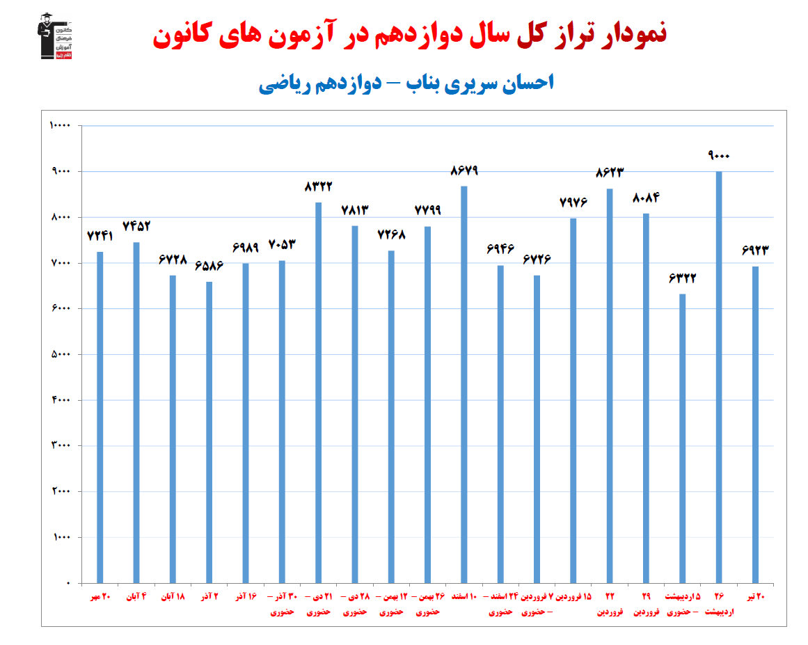 نمودار پیشرفت میانگین تراز در پایههای مختلف، نمودار تراز کل، عملکرد آزمونهای سال دوازدهم و شروع از تابستان و تراز آزمون های تابستان، کارنامههای مبحثی در نمودارها و تصاویر زیر قابل مشاهده است.
