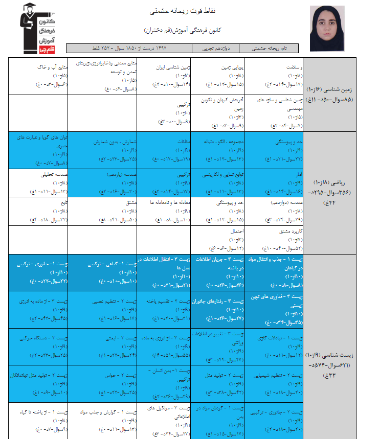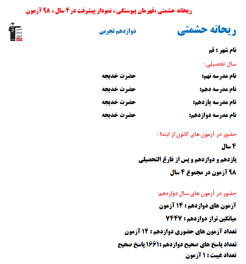 در ادامه میتوانید عملکرد درسی ریحانه حشمتی را در کانون مشاهده کنید.