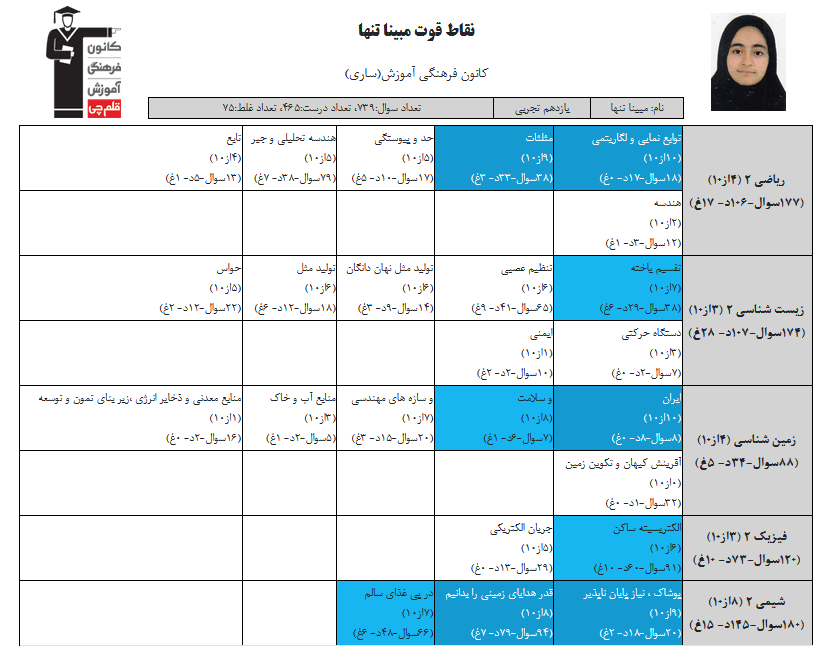 در ادامه میتوانید عملکرد درسی مبینا تنها را در کانون مشاهده کنید.