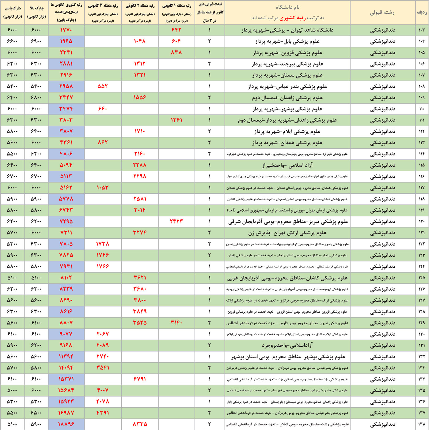 جدول انتخاب رشته دندان پزشکی ( نسخه دوم)