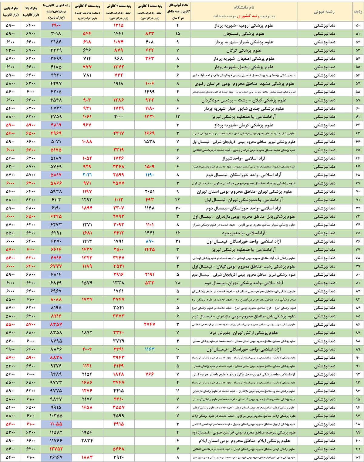 رنگ قزمز: مربوط به قبولی های کمتر از 3 نفر است