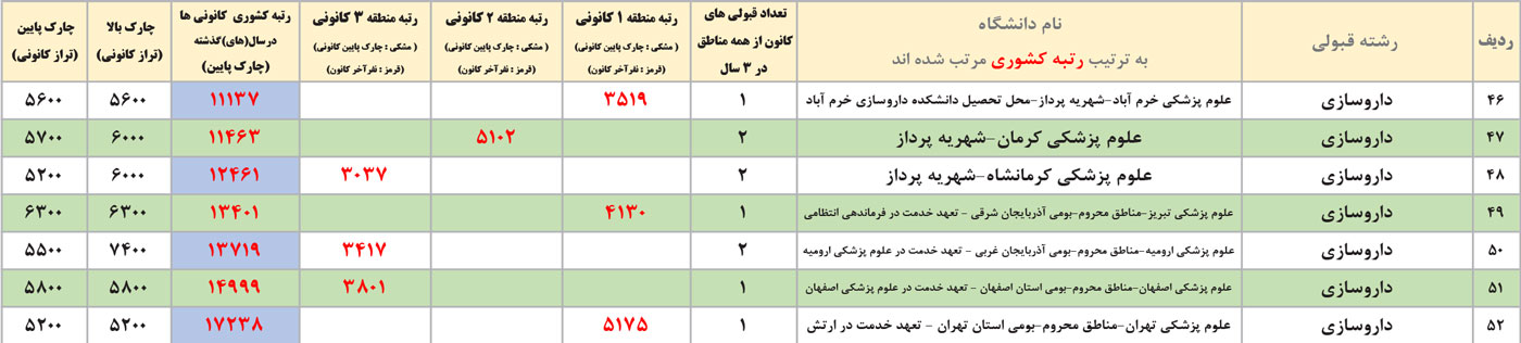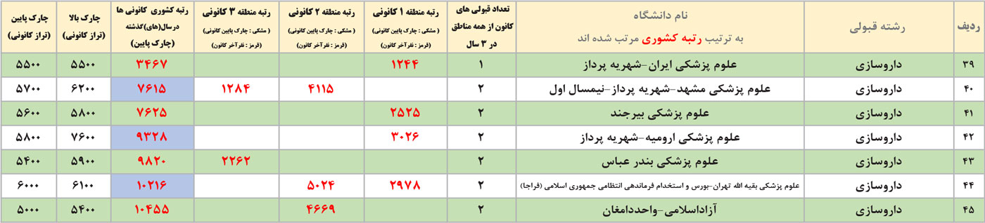 رنگ قرمز: مربوط به قبولی های کمتر از 3 نفر است