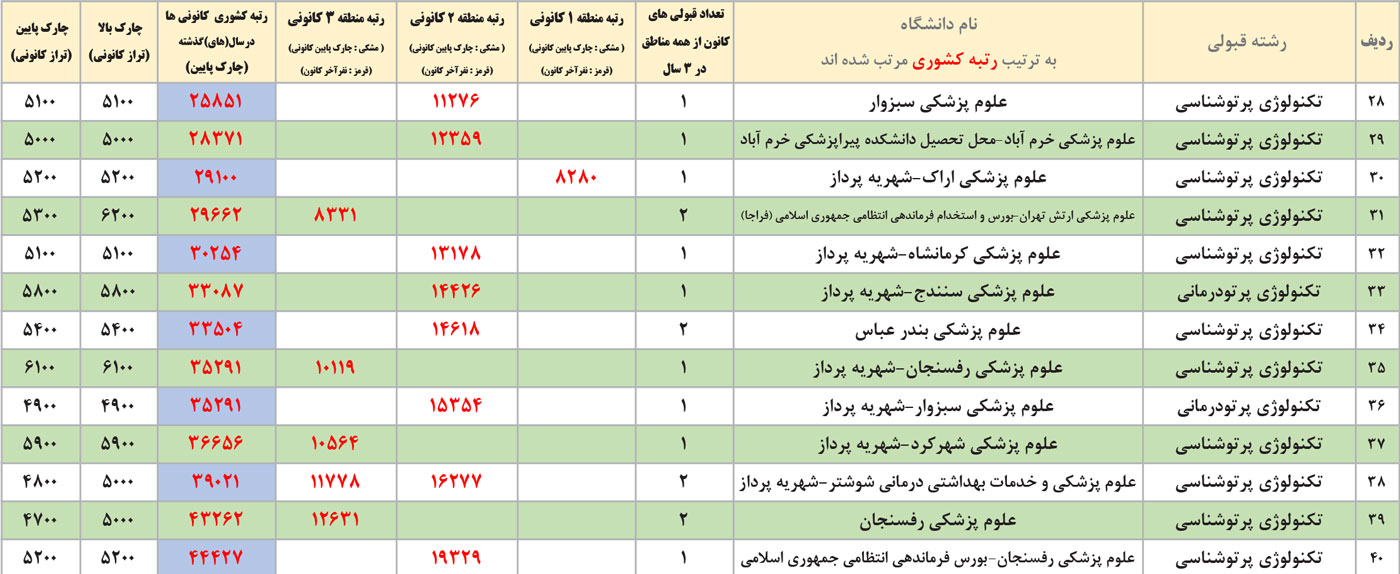 رنگ قرمز: مربوط به قبولی های کمتر از 3 نفر است