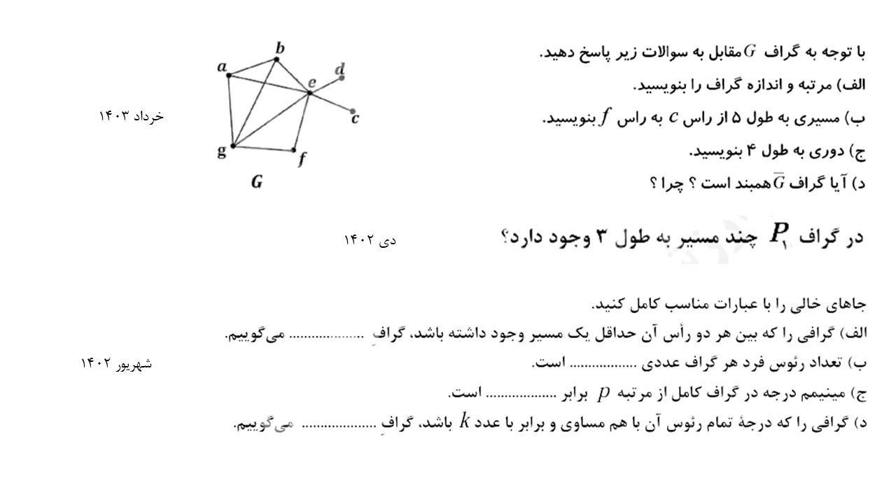 در ابتدای مطلب سوالاتی از امتحان نهایی سالهای اخیر از این مبحث جمعآوری شده