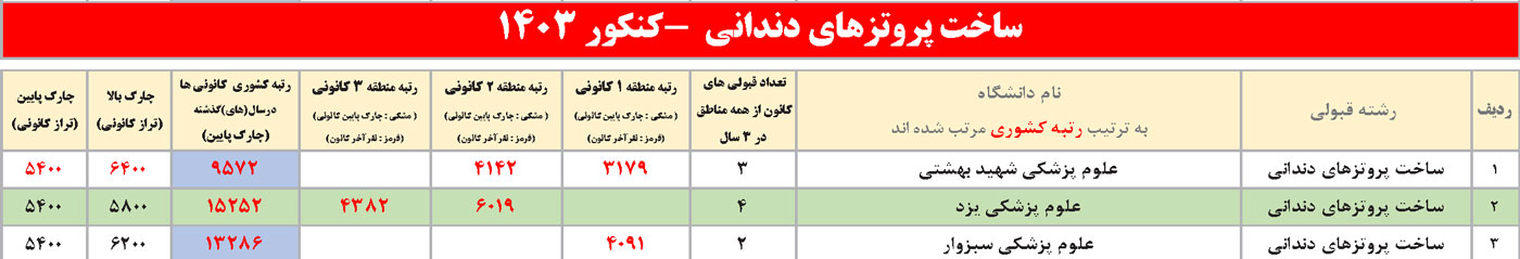 رنگ قرمز: مربوط به قبولی های کمتر از 3 نفر است