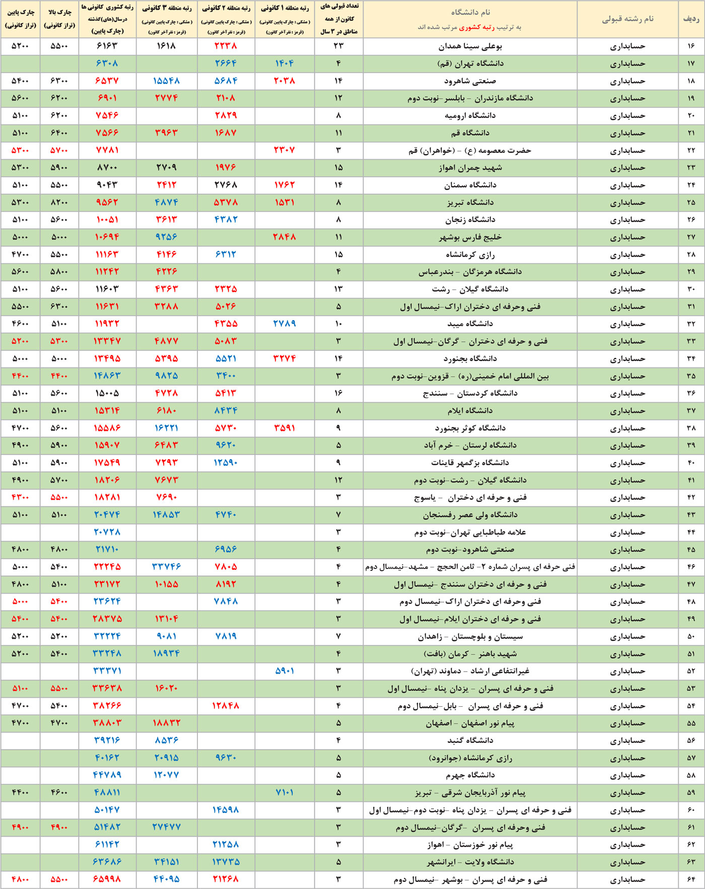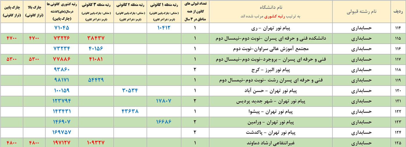 رنگ قرمز: مربوط به قبولی های کمتر از 3 نفر است
