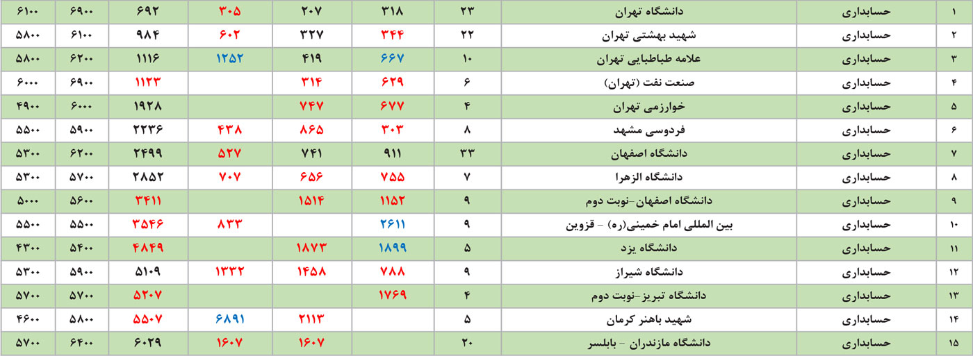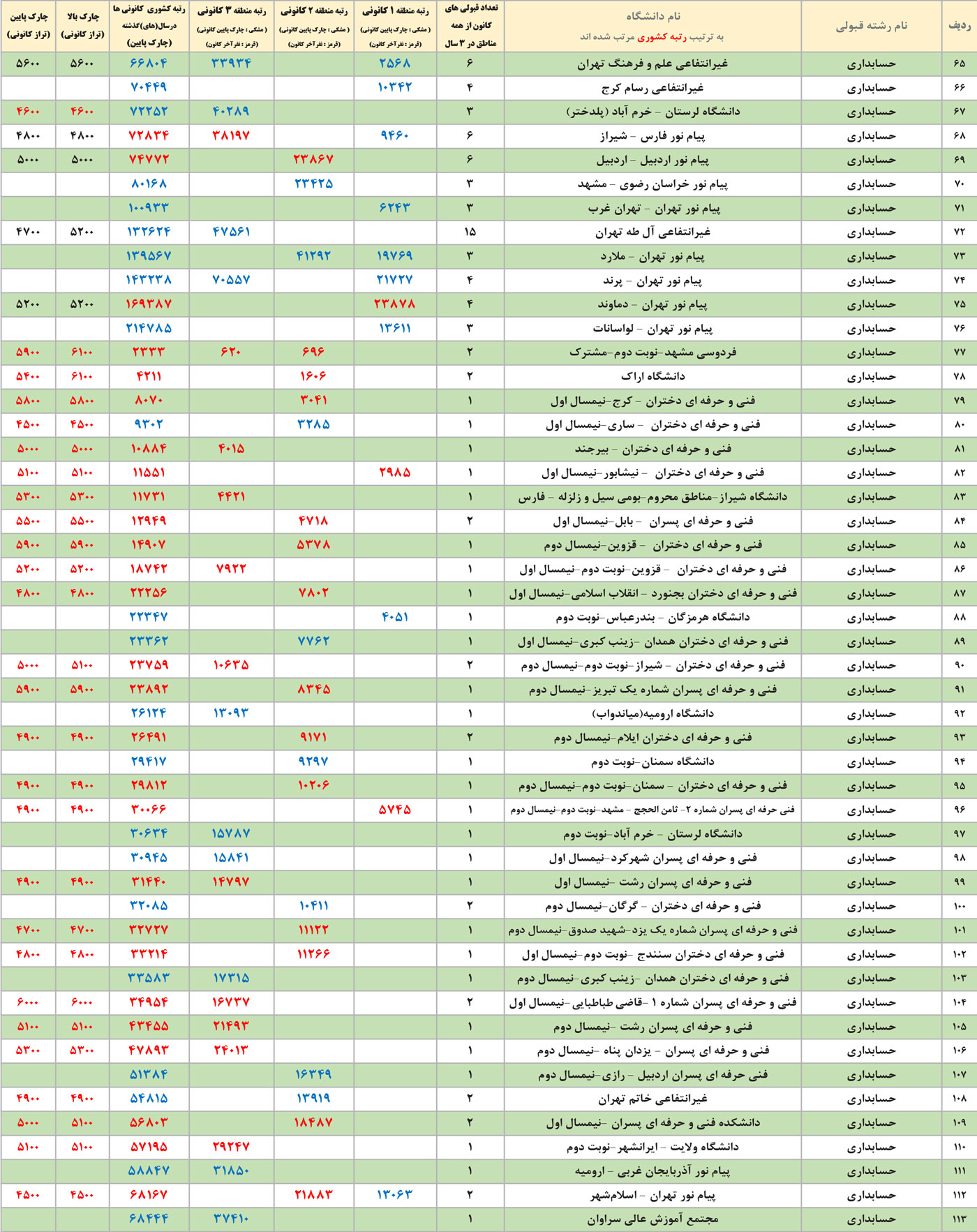 همچنین جدول سایر رشته ها به تدریج منتشر مشود.