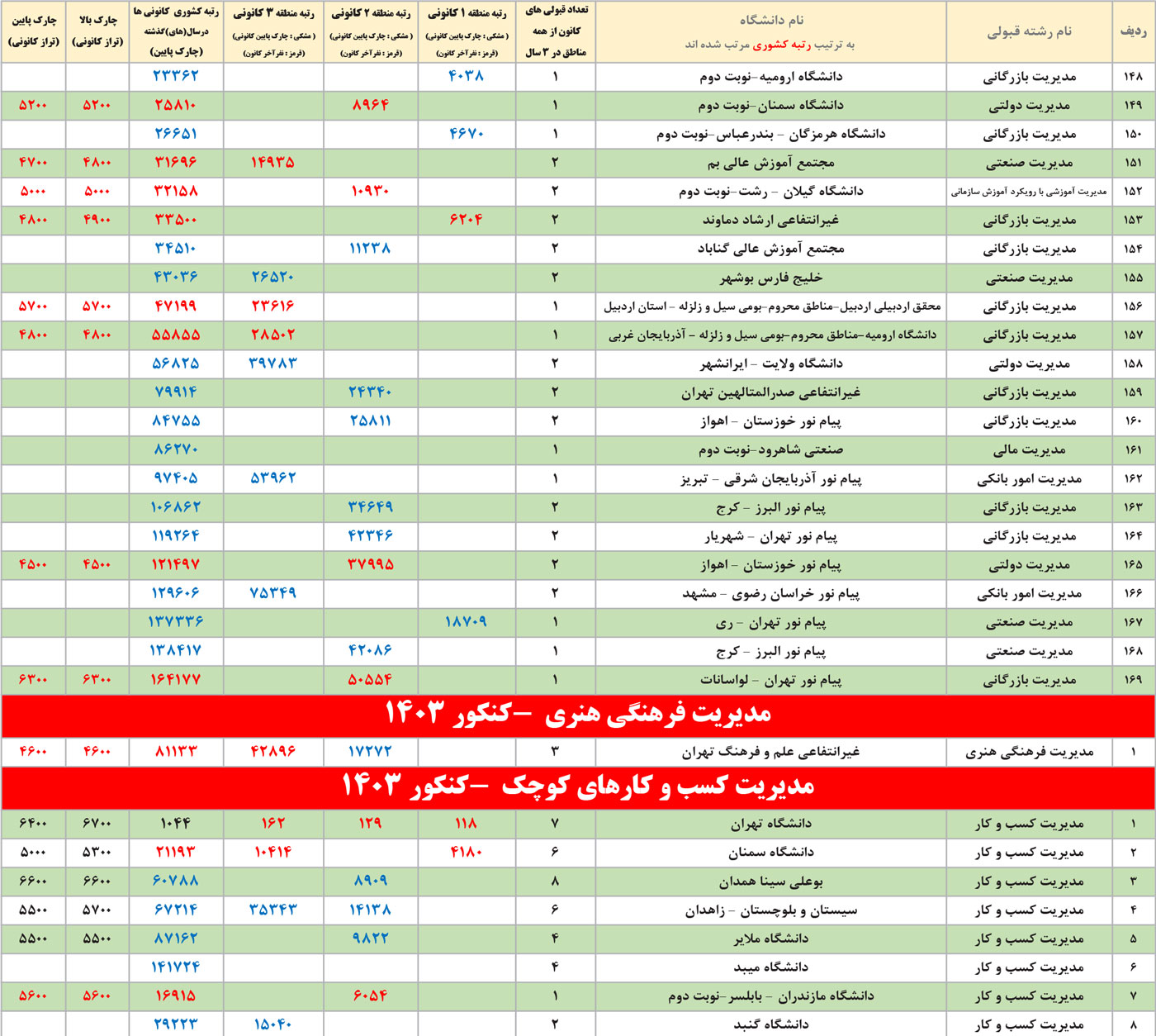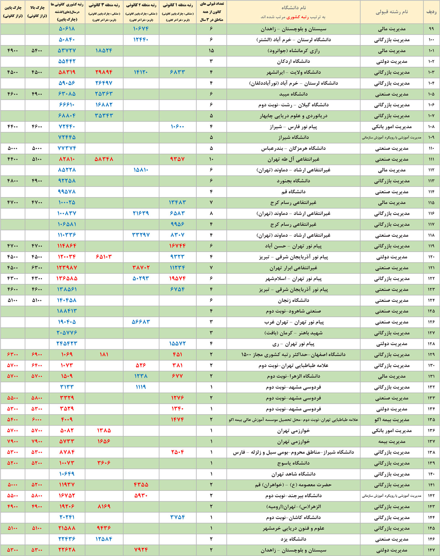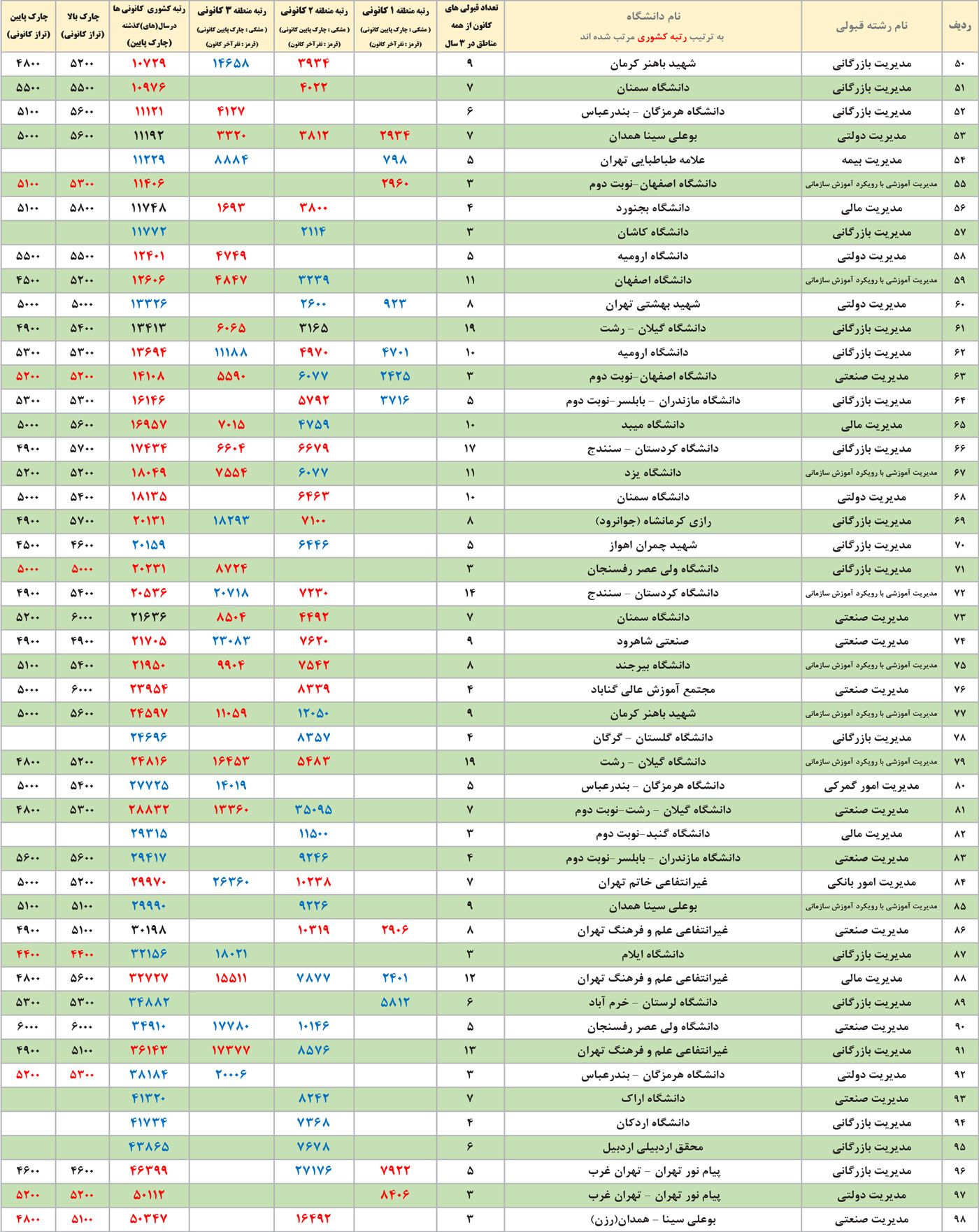 همچنین جدول سایر رشته ها به تدریج منتشر مشود.