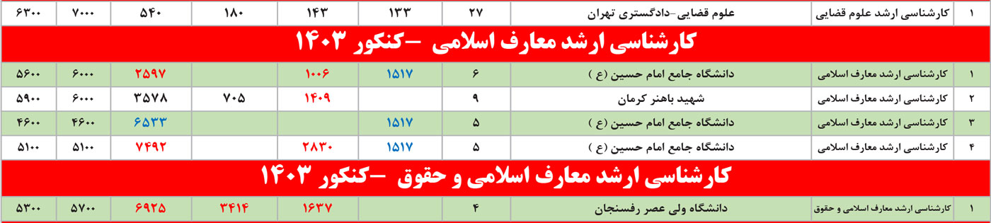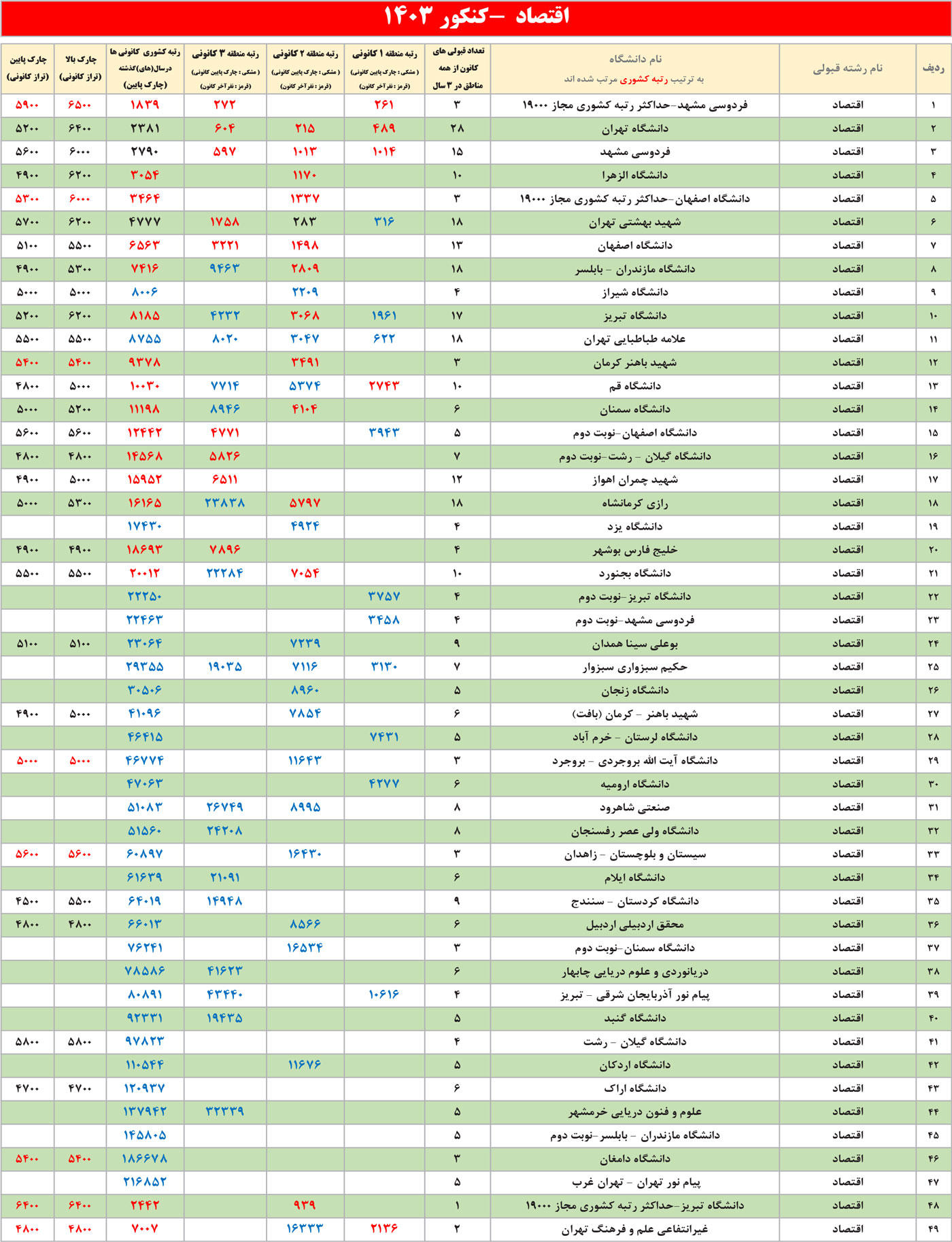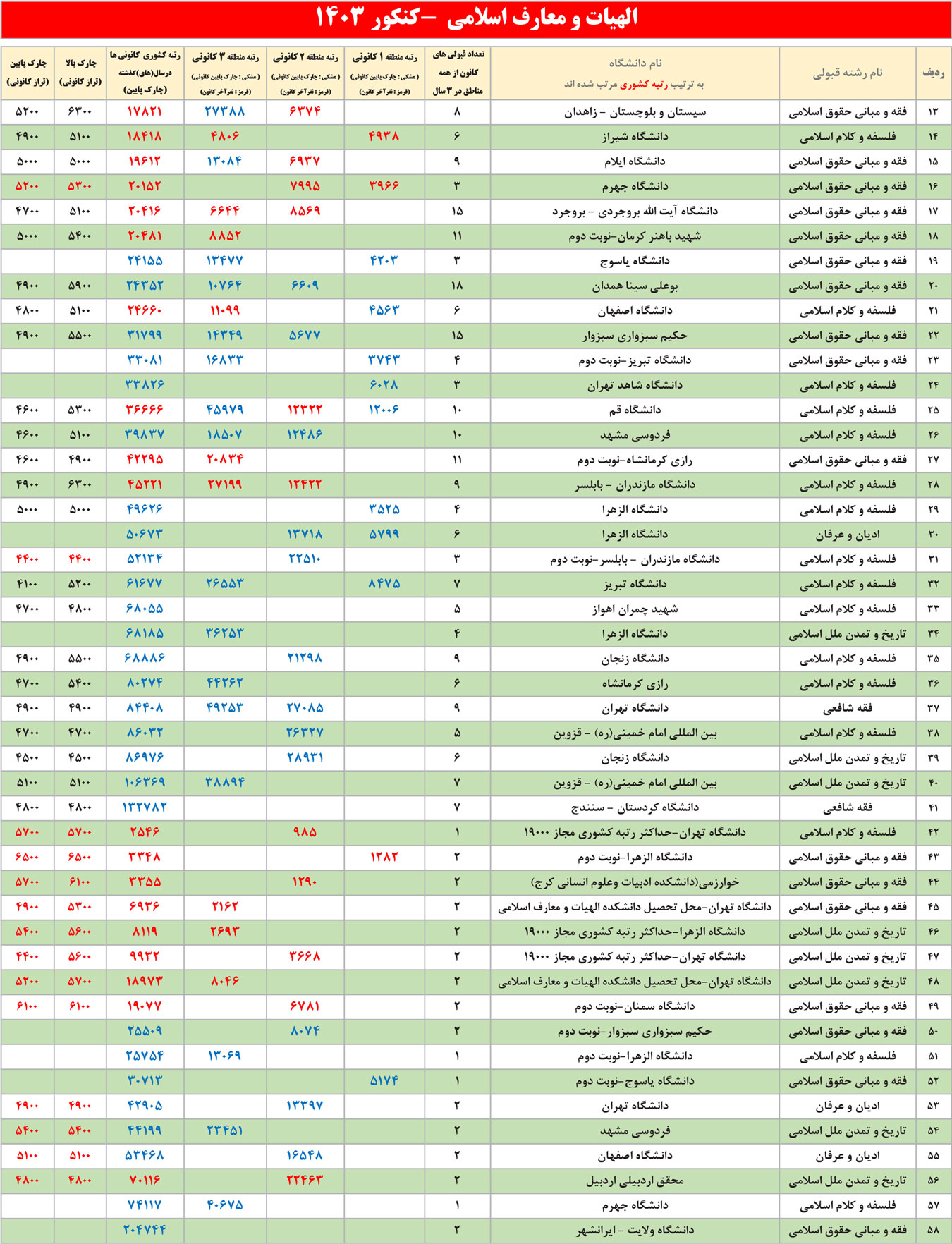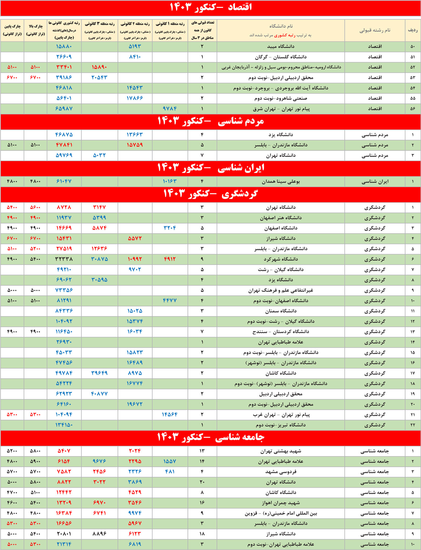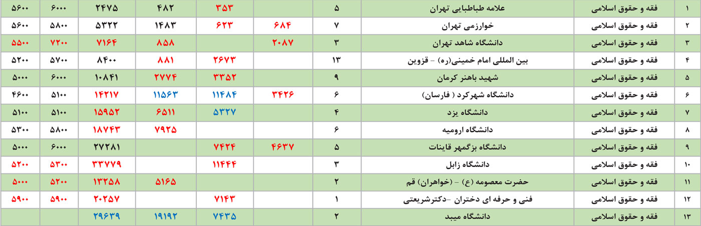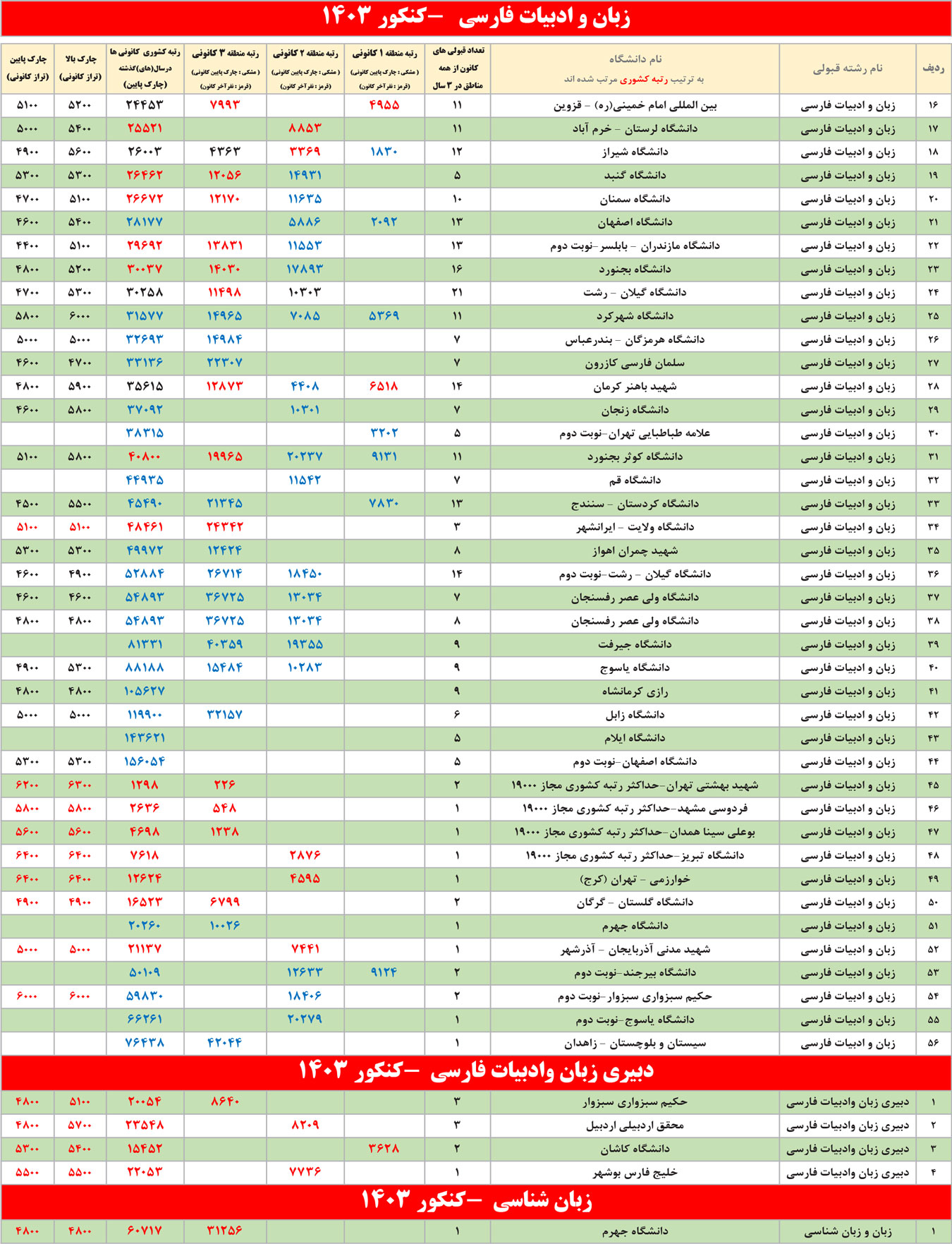 همچنین جدول سایر رشته ها به تدریج منتشر مشود.