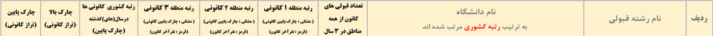 رنگ قرمز: مربوط به قبولی های کمتر از 3 نفر است