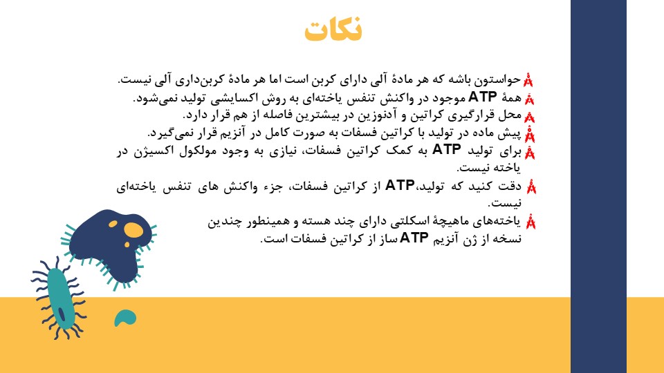 بدن ما برای فرآیند تنفس یاختهای نیازمند اکسیژن است که با استفاده از آن ATP تولید کنیم.