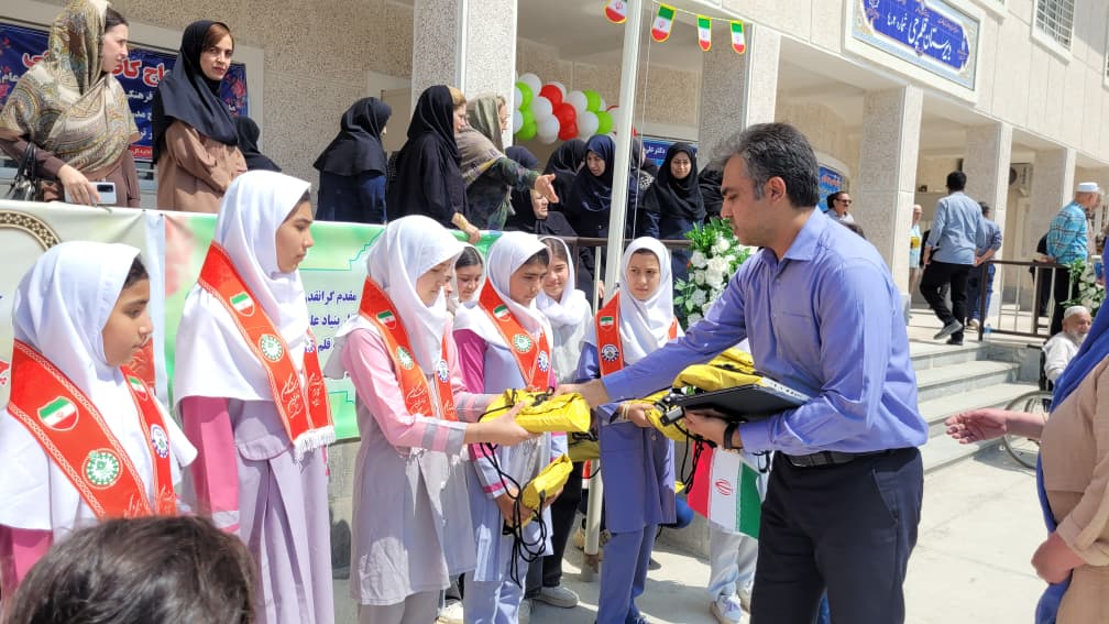 اهدای پکیج لوازم التحریر توسط صابر فتاحی مسئول پروژههای مدرسهسازی