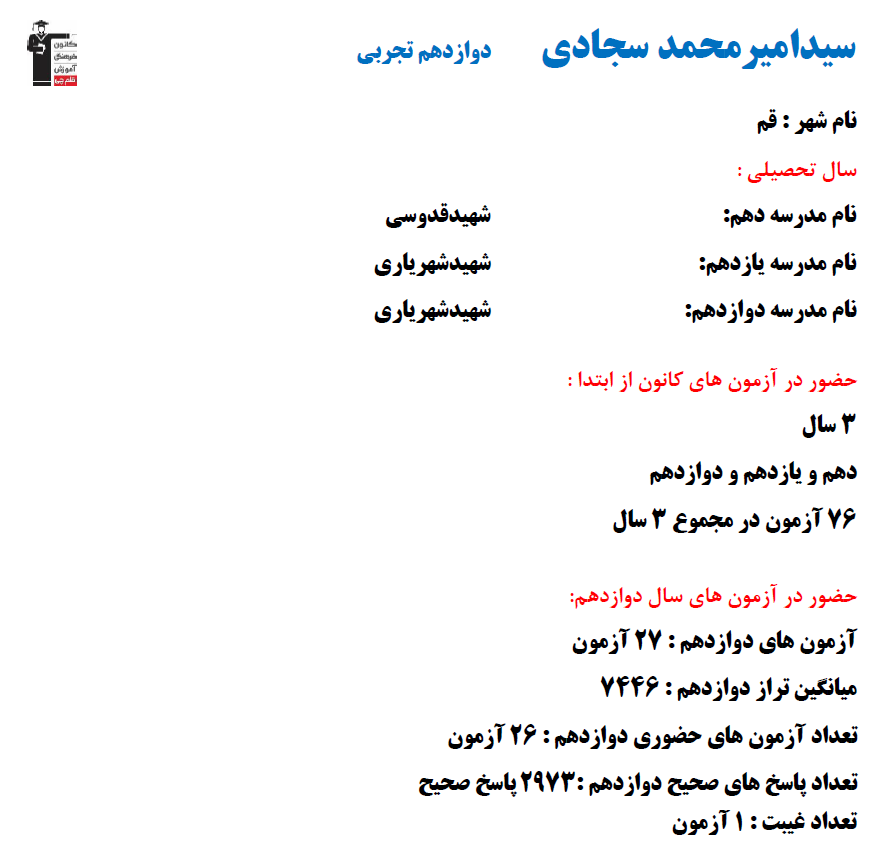 با برترهای دوازدهم تجربی ۱۴۰۴ آشنا شوید:
