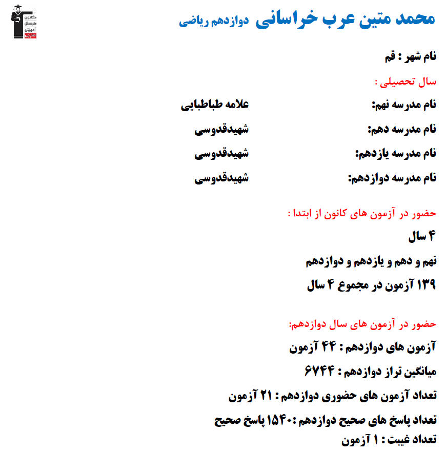 با برترهای دوازدهم ریاضی ۱۴۰۴ آشنا شوید: