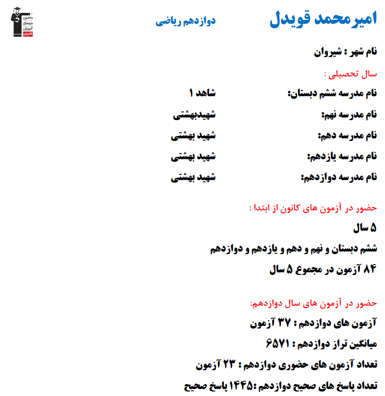 با برترهای دوازدهم ریاضی ۱۴۰۴ آشنا شوید: