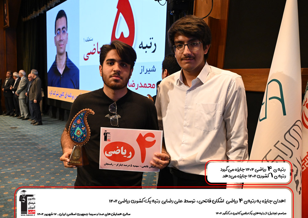 اهدای جایزه به رتبه 4 ریاضی