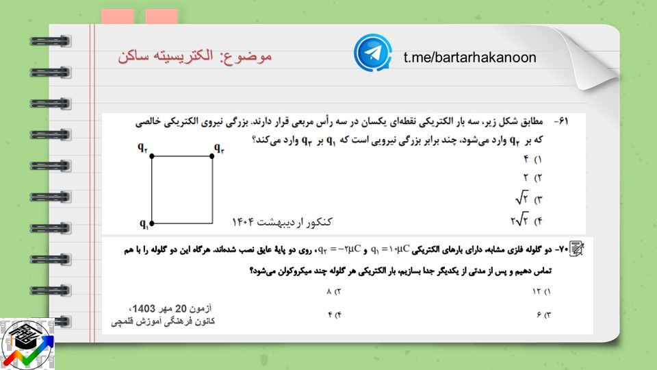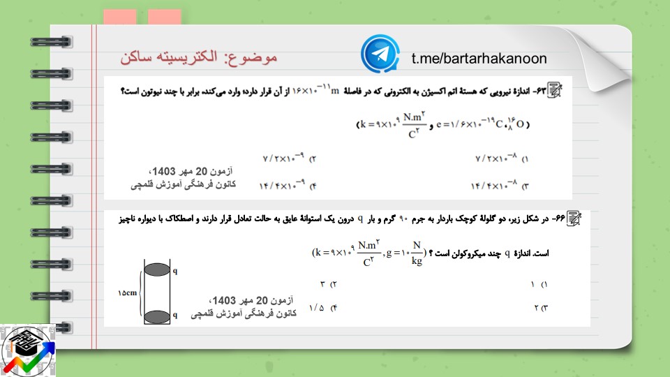1- درسنامه و نکات الکتریسیته ساکن