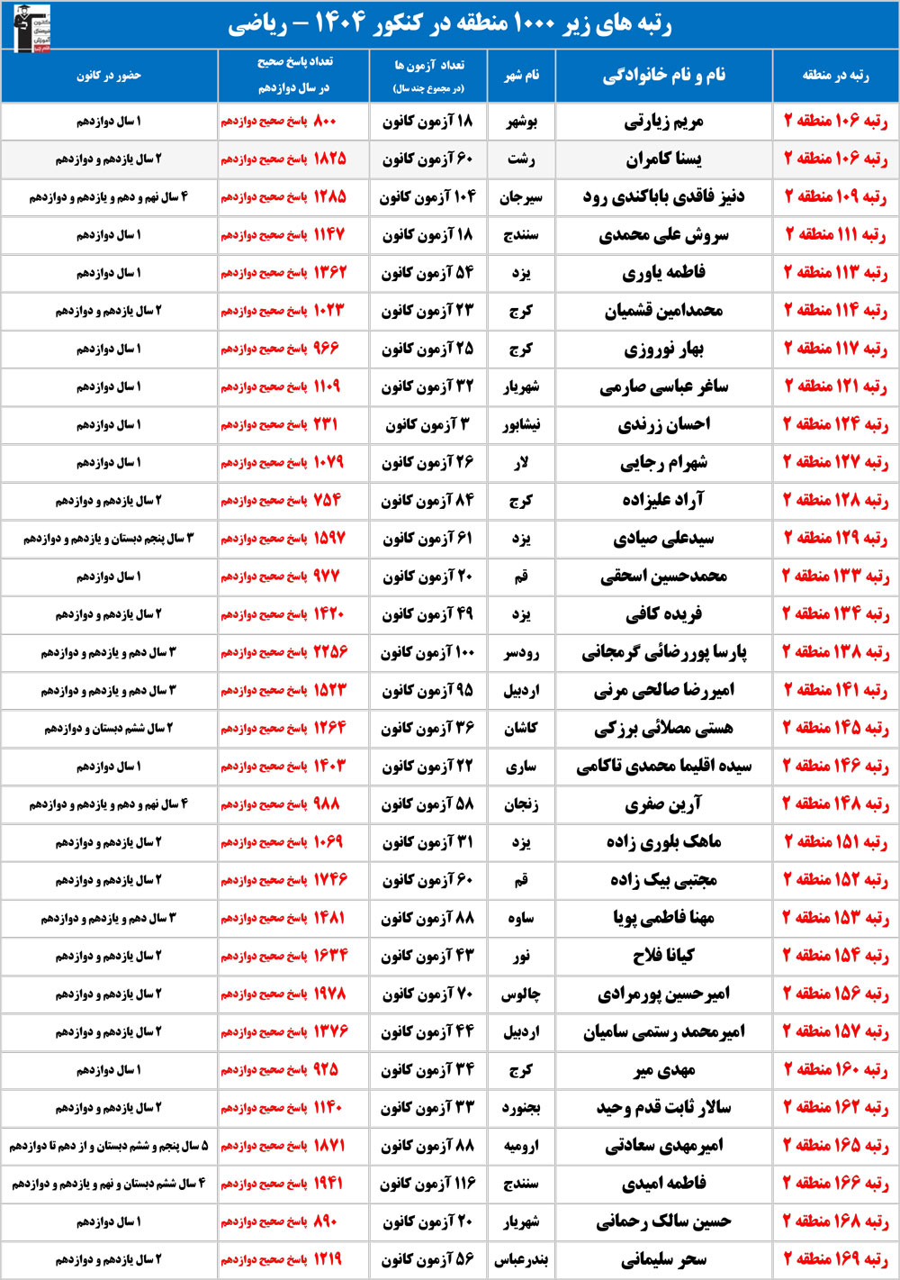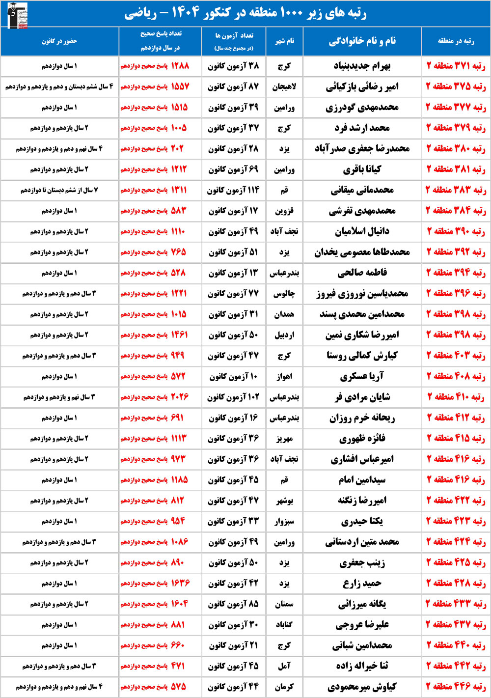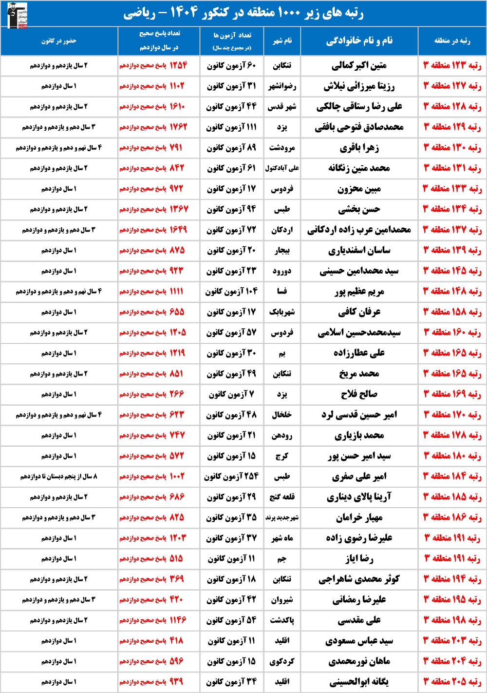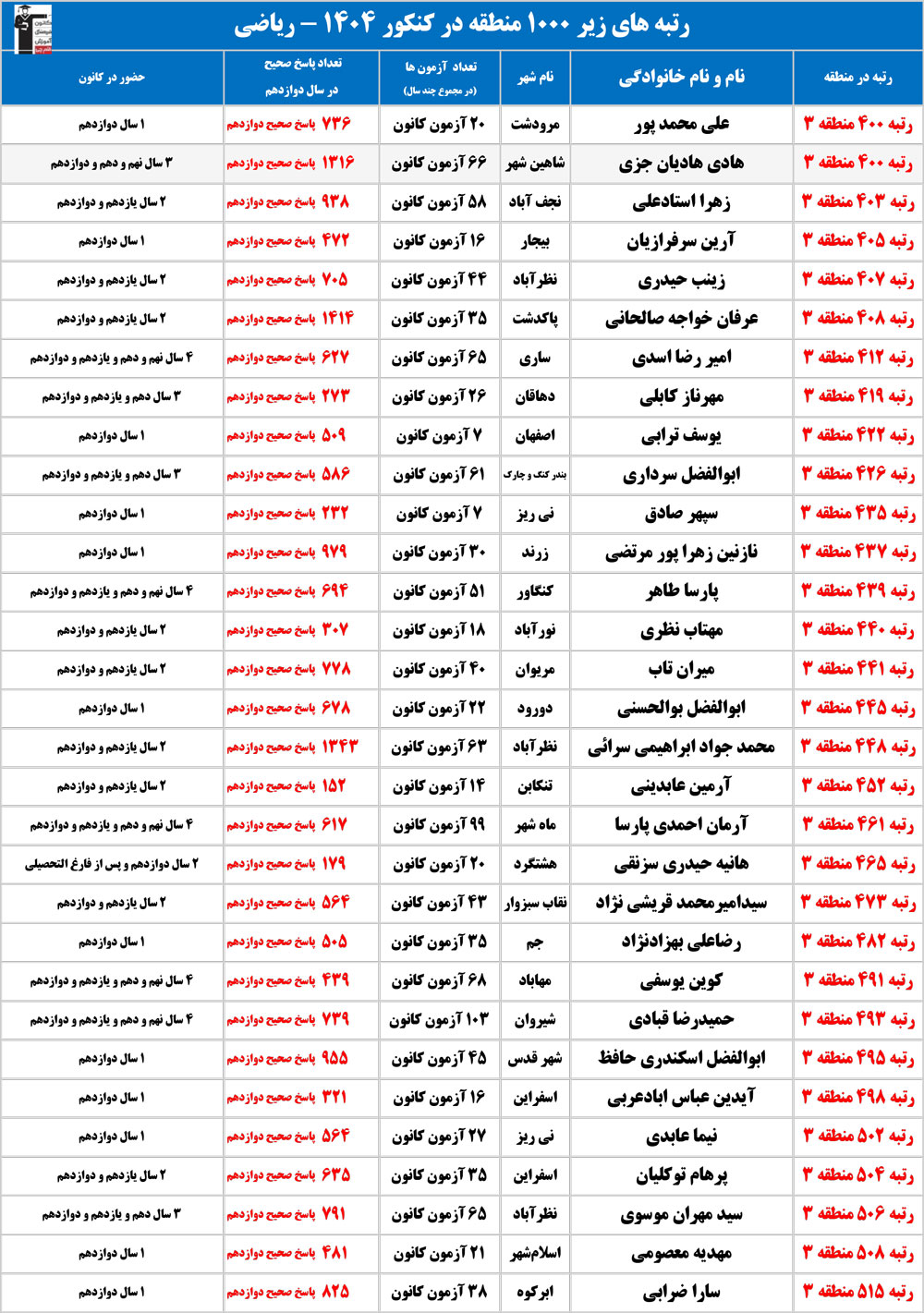 در ادامه با رتبه های زیر 1000 منطقه کانونی در کنکور 1404 در رشته ریاضی آشنا شوید.