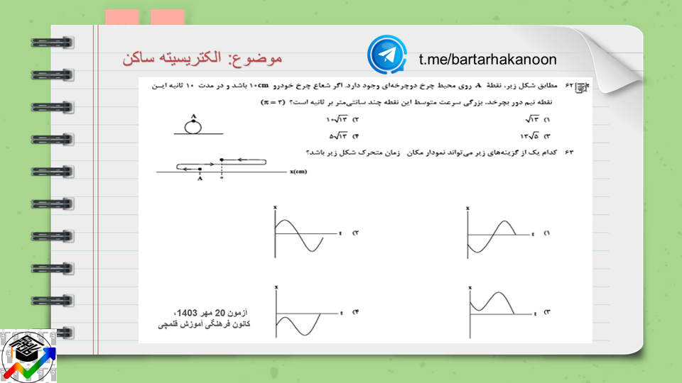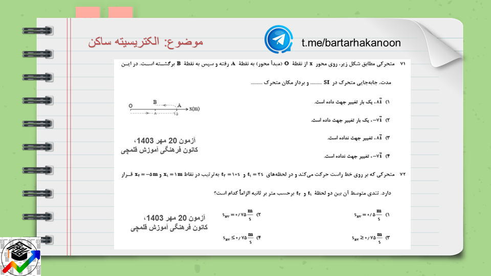🟢در ادامه 5 تست از آزمون سال گذشته ی کانون و کنکور امسال را بررسی می کنیم.🟢