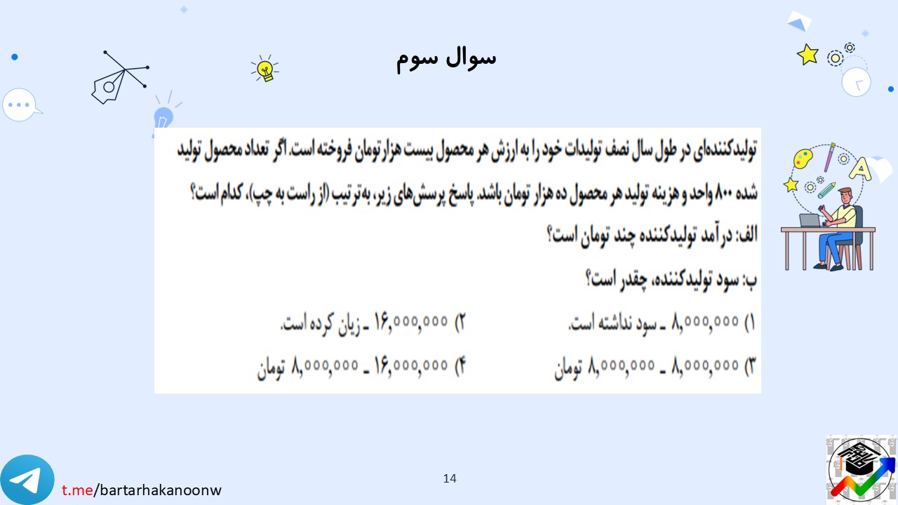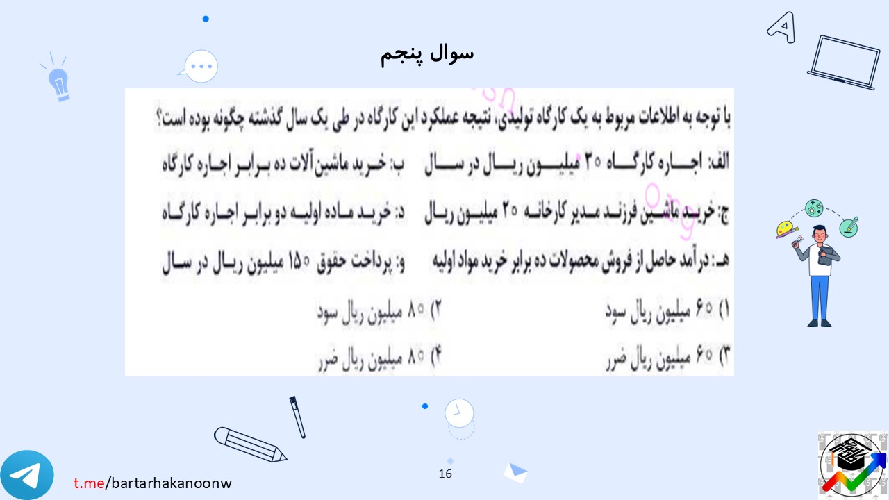 میزان سود یا زیان برابر است با تفاوت درامد و هزینه ها