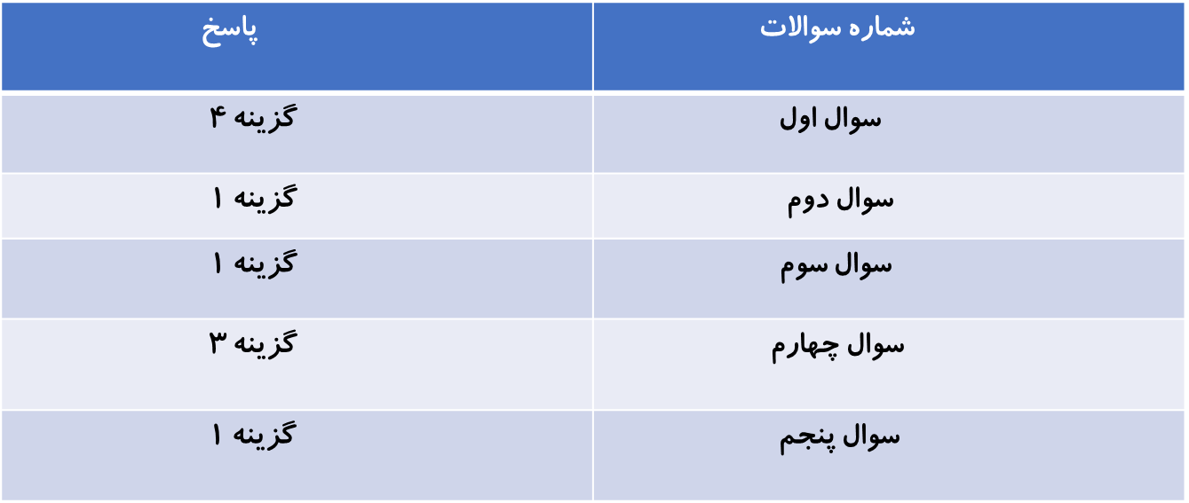4-پاسخ کلیدی تست ها در انتهای مطلب