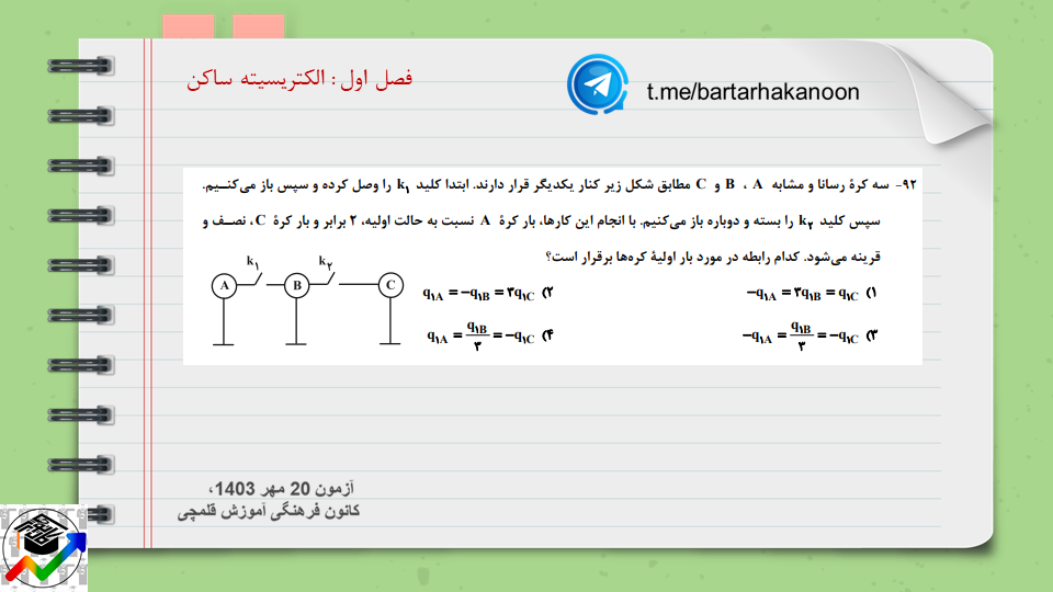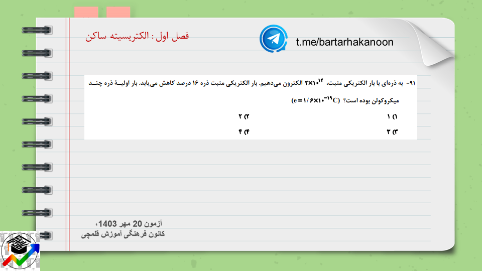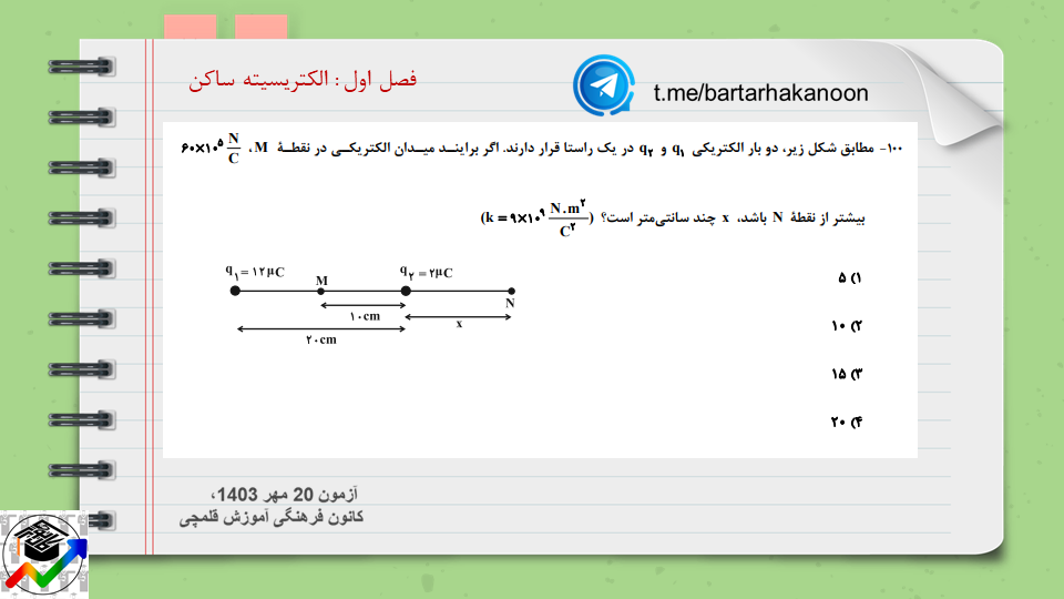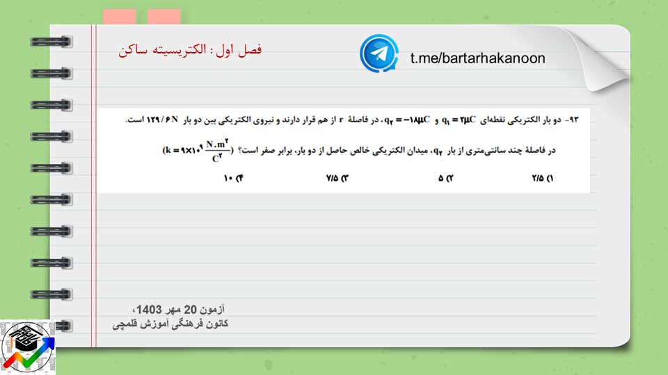 🟢در ادامه 5 تست از آزمون سال گذشته ی کانون و کنکور امسال را بررسی می کنیم.🟢