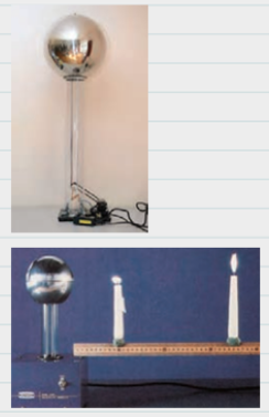 وقتی دو شمع که یکی به واندوگراف نزدیکتر است را کنار آن قرار می دهیم، بار منفی بزرگ روی آن یون های مثبت شعله ی شمع نزدیکتر را به سمت خودش می کشد.