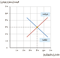 الف) مقدار تعادلی 40 (کیلوگرم) / قیمت تعادلی 30 (30 هزار تومان)