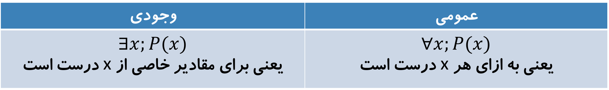 برای بیان عبارت ها با استفاده از نمادهای ریاضی به جای «به ازای هر،» یا «به ازای جمیع مقادیر» از نماد ∀ و به جای «وجود دارد» یا «به ازای بعضی مقادیر» از نماد ∃ استفاده می کنیم. نماد ∀ سور عمومی و نماد ∃ سور وجودی نامیده می شود.