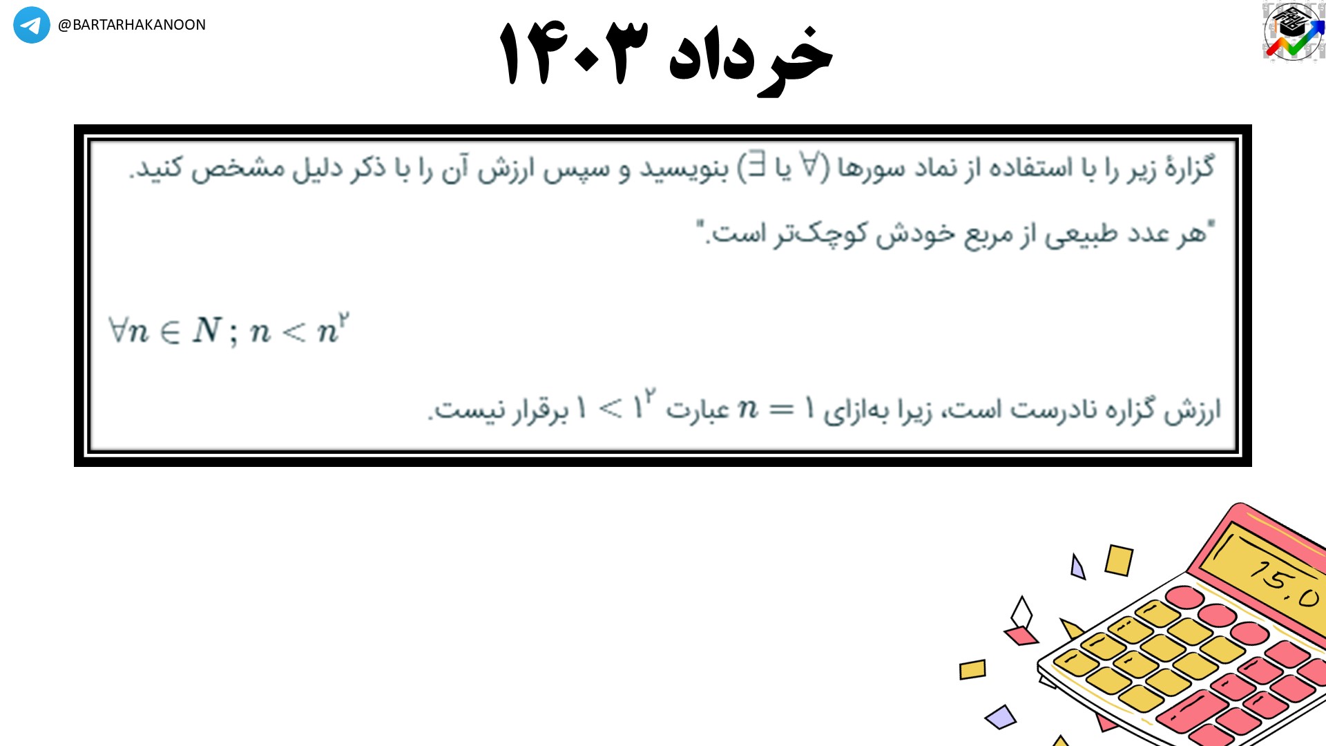 مثال: ارزش گزاره زیر نادرست است؛ زیرا x=0.5 برای آن مثال نقض محسوب می شود