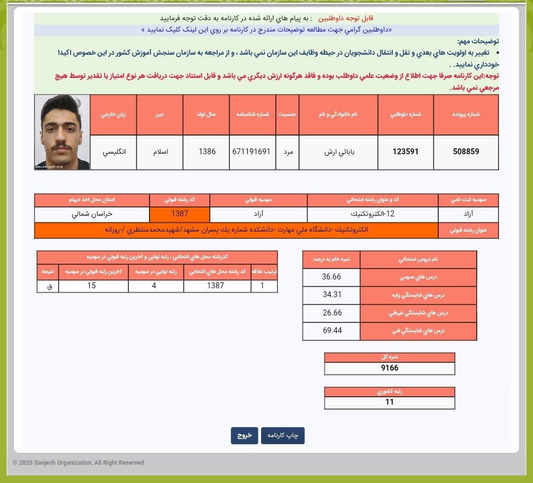 رشته و دانشگاه قبولی: الکتروتکنیک - دانشگاه شهید محمد منتظری مشهد