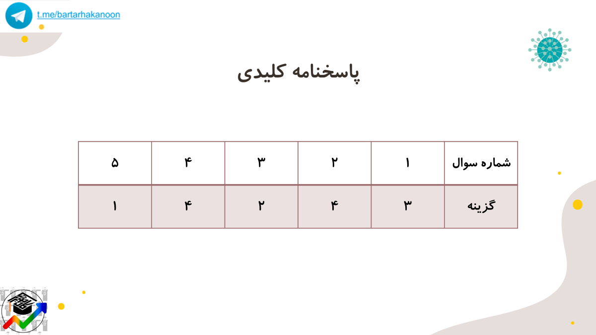 4-پاسخنامه کلیدی تست ها در انتهای مطلب