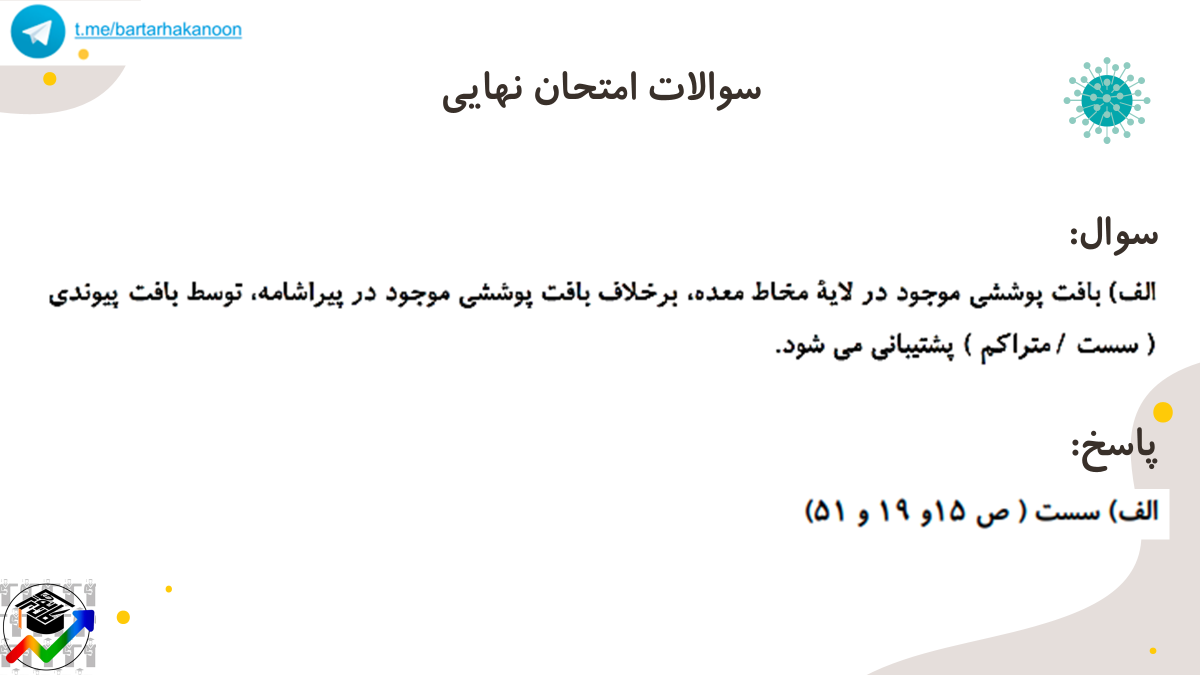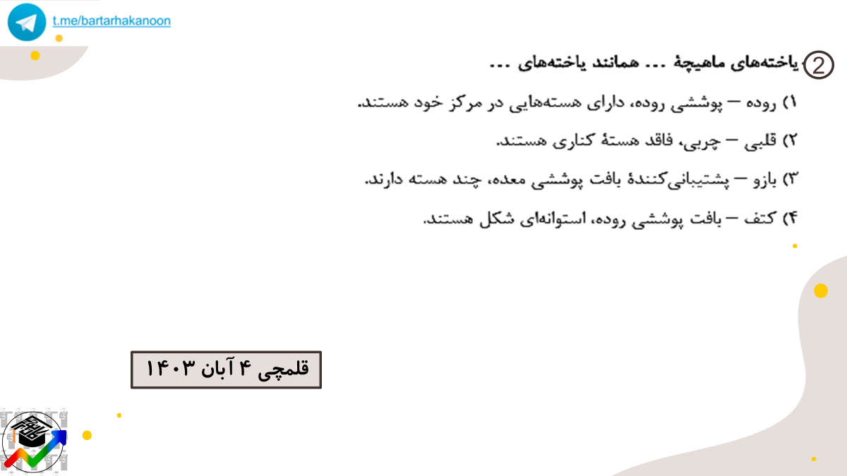 4️⃣ در زیر یاخته های بافت پوششی بخشی بنام غشای پایه حضور دارد.