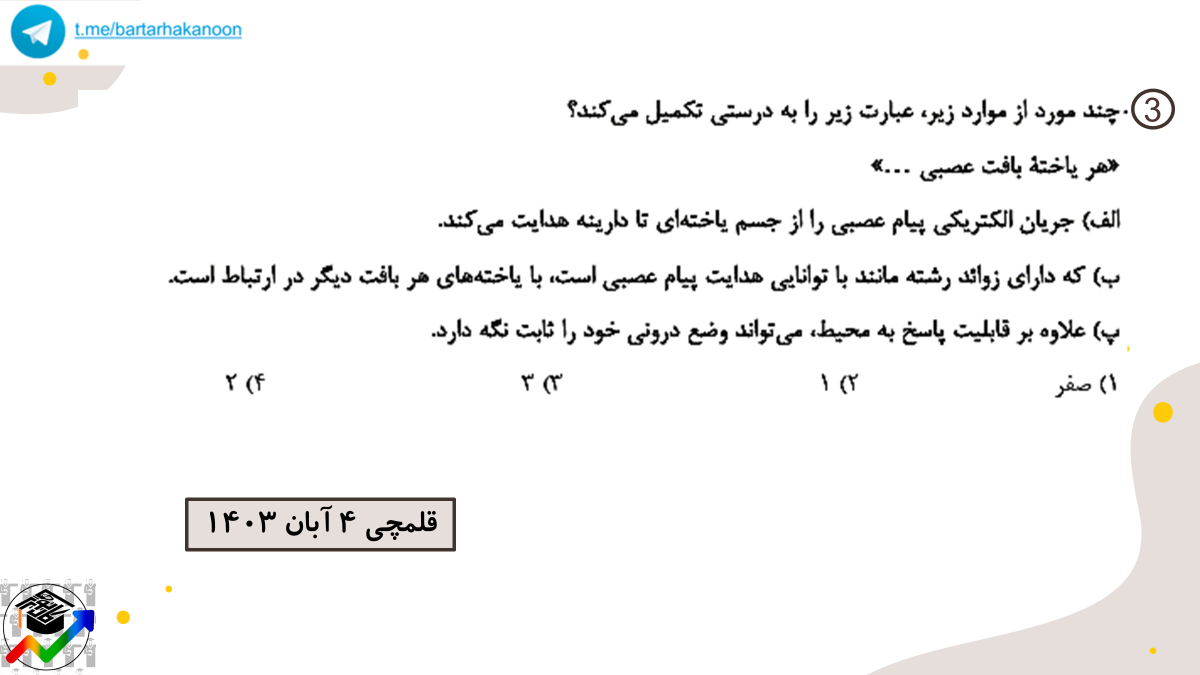 2️⃣ نورون ها دارای سه بخش دندریت ، جسم سلولی و آکسون هستند.