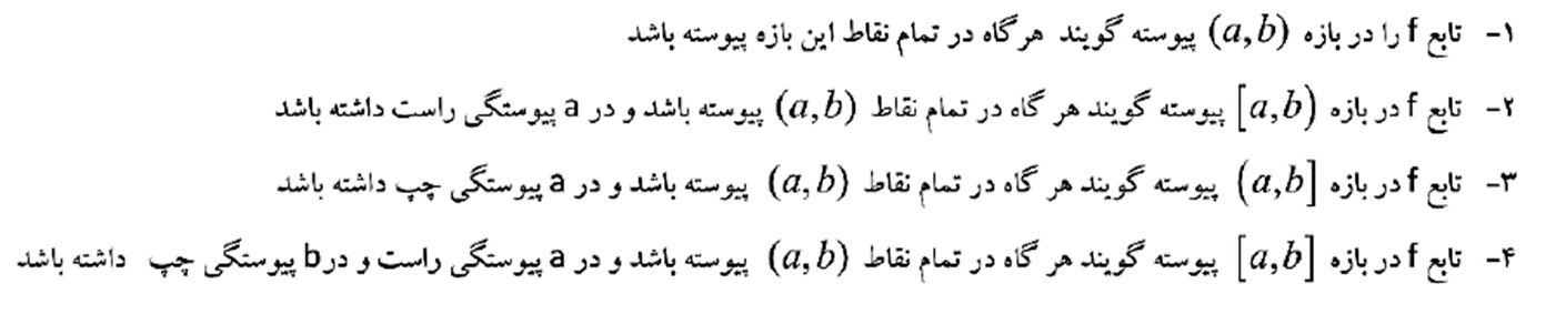 (1توابع چند جملهای روی R پیوستهاند. 2)توابع کسری گویا در ریشه های مخرج ناپیوسته اند.