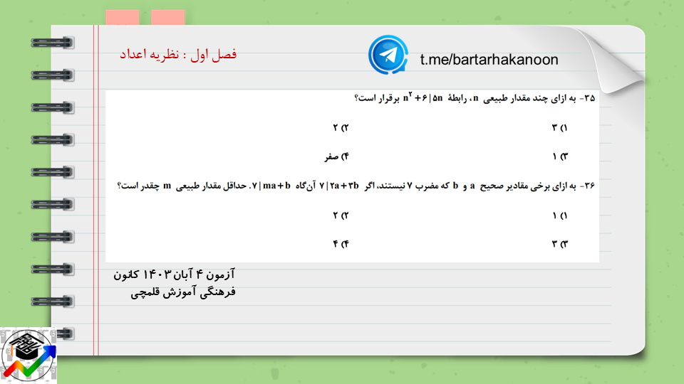 ✅ویدیو حل تشریحی سوالات نظریه اعداد(بخش پذیری در اعداد صحیح)✅
