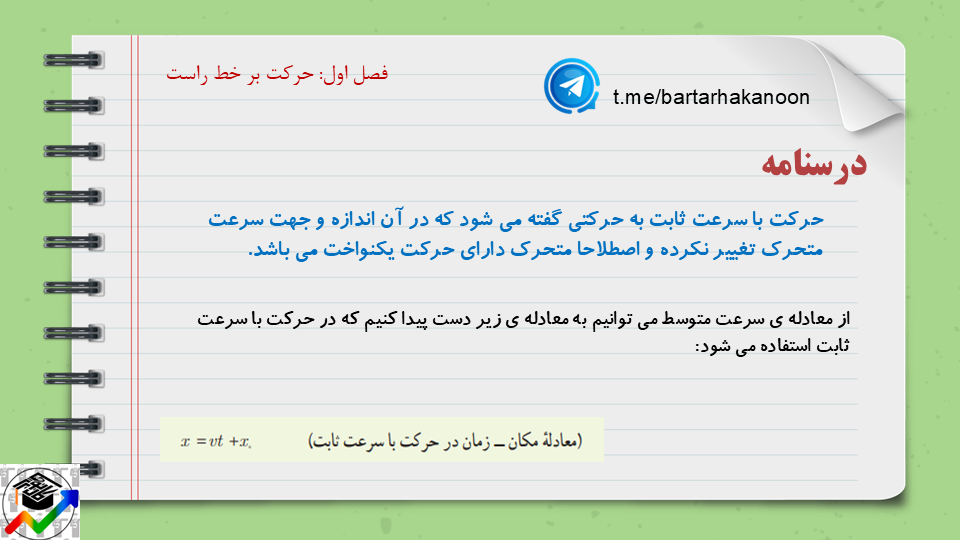 1- درسنامه و نکات حرکت با سرعت ثابت