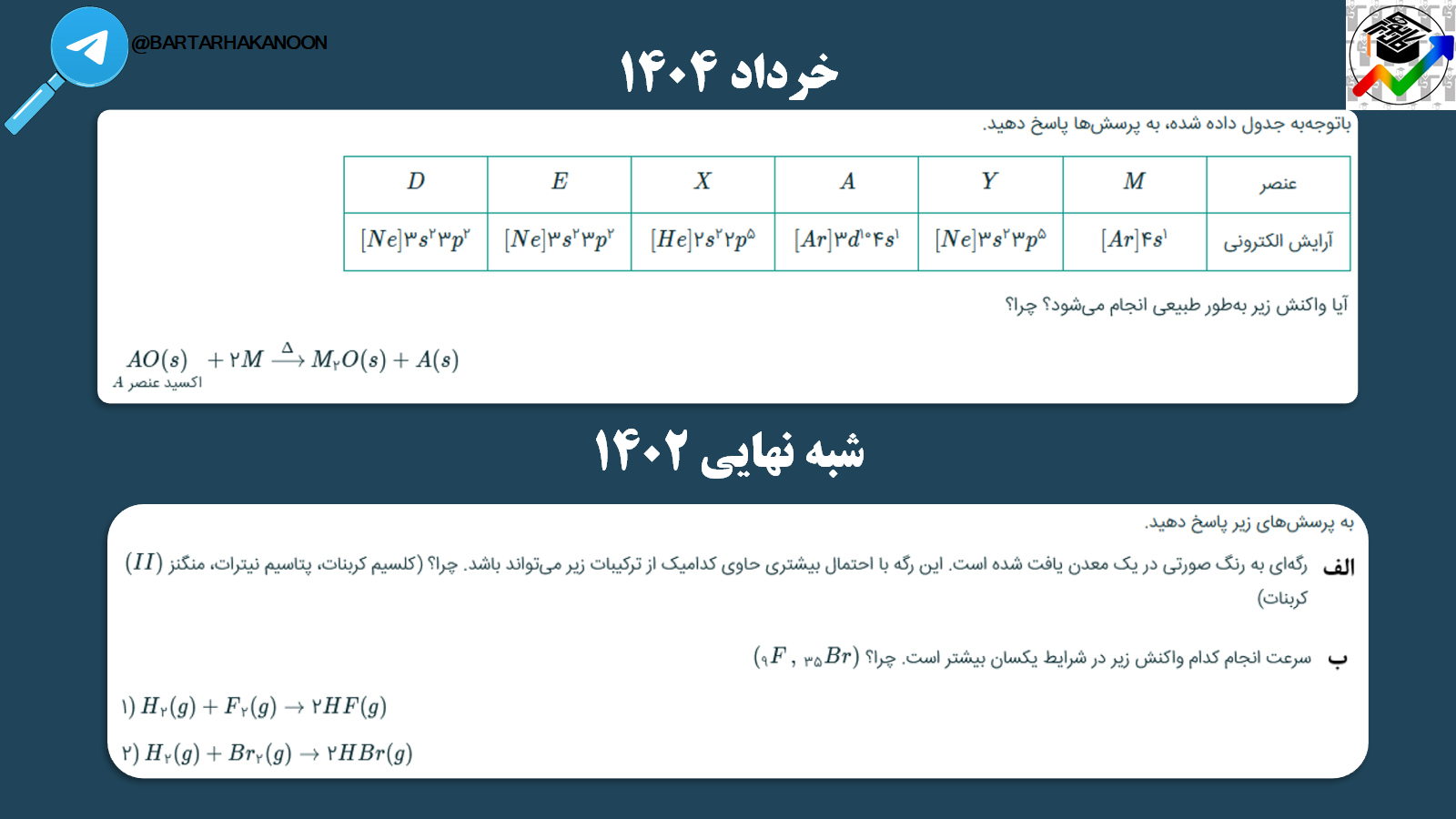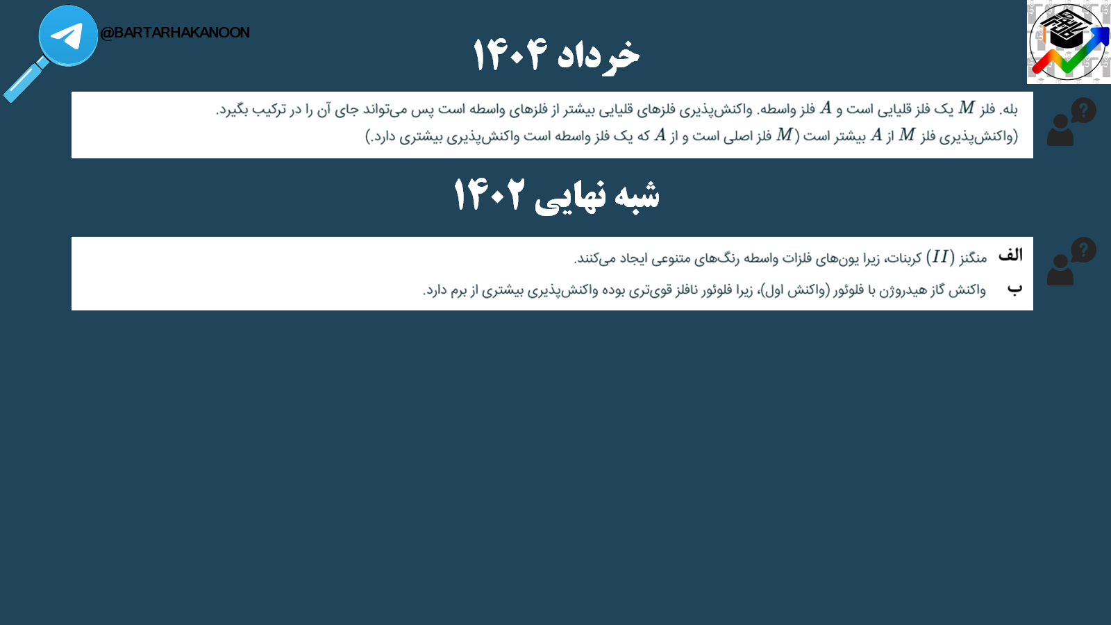 در ابتدا سوالاتی که از این مبحث در امتحان نهایی آمده است را میبینیم.