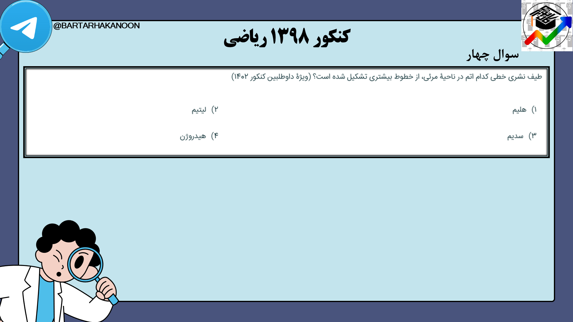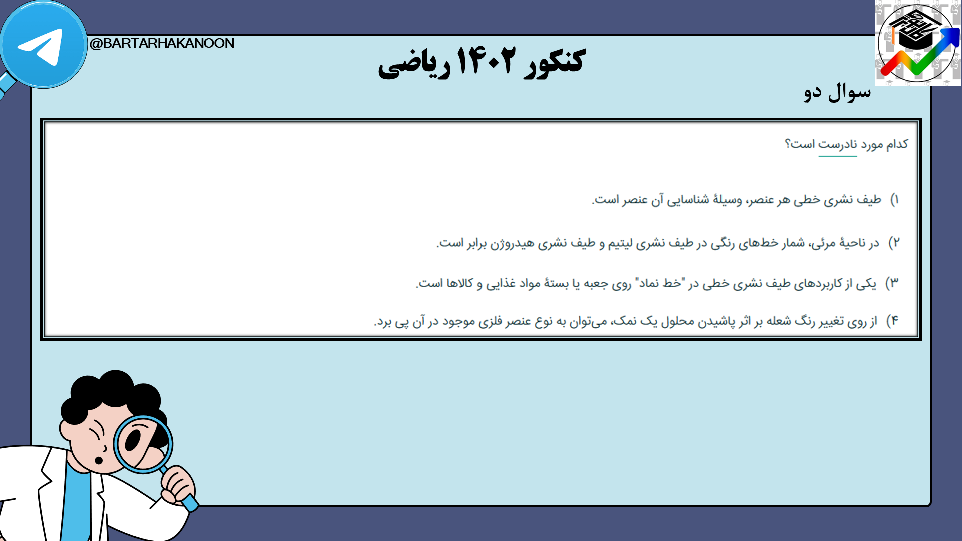 حواستون باشه: طیف نشری خطی عنصرها برخلاف طیف نور خورشید که پیوسته بود، یک طیف گسسته است.