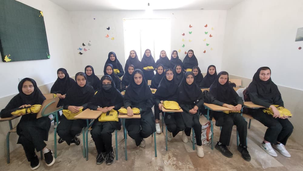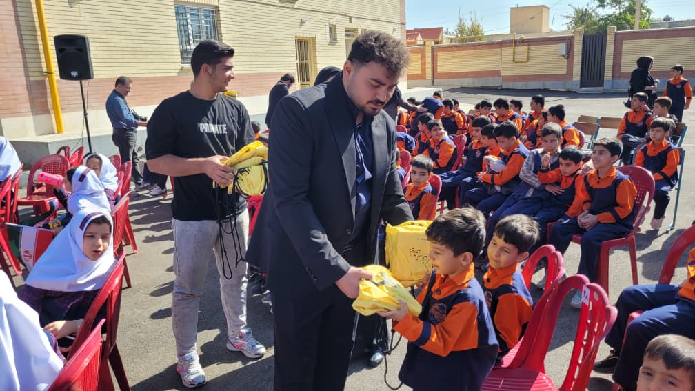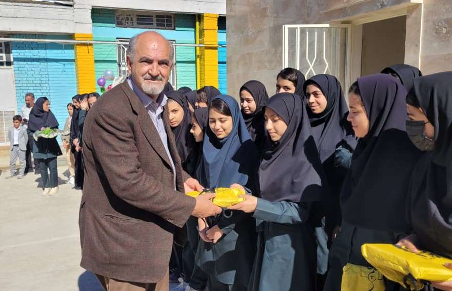 اهدای پکیج لوازمالتحریر توسط صابر فتاحی مسئول پروژههای مدرسهسازی