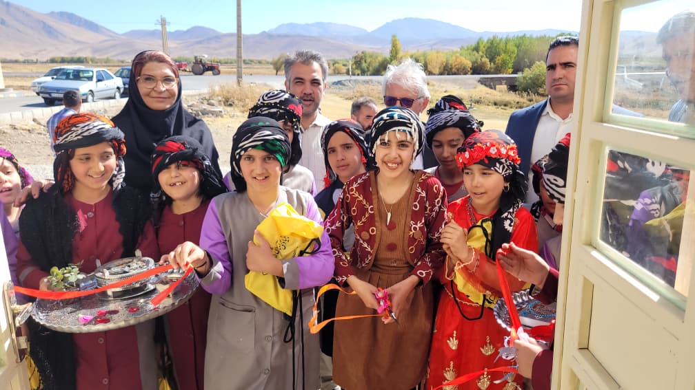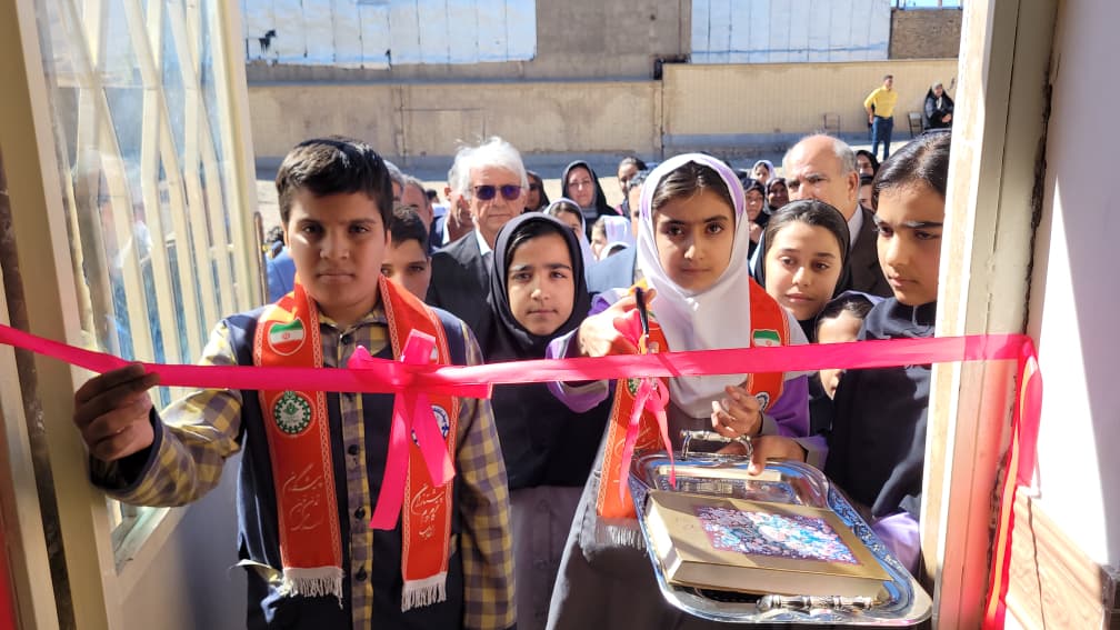 بریدن روبان افتتاح توسط دانشآموزان مدرسه