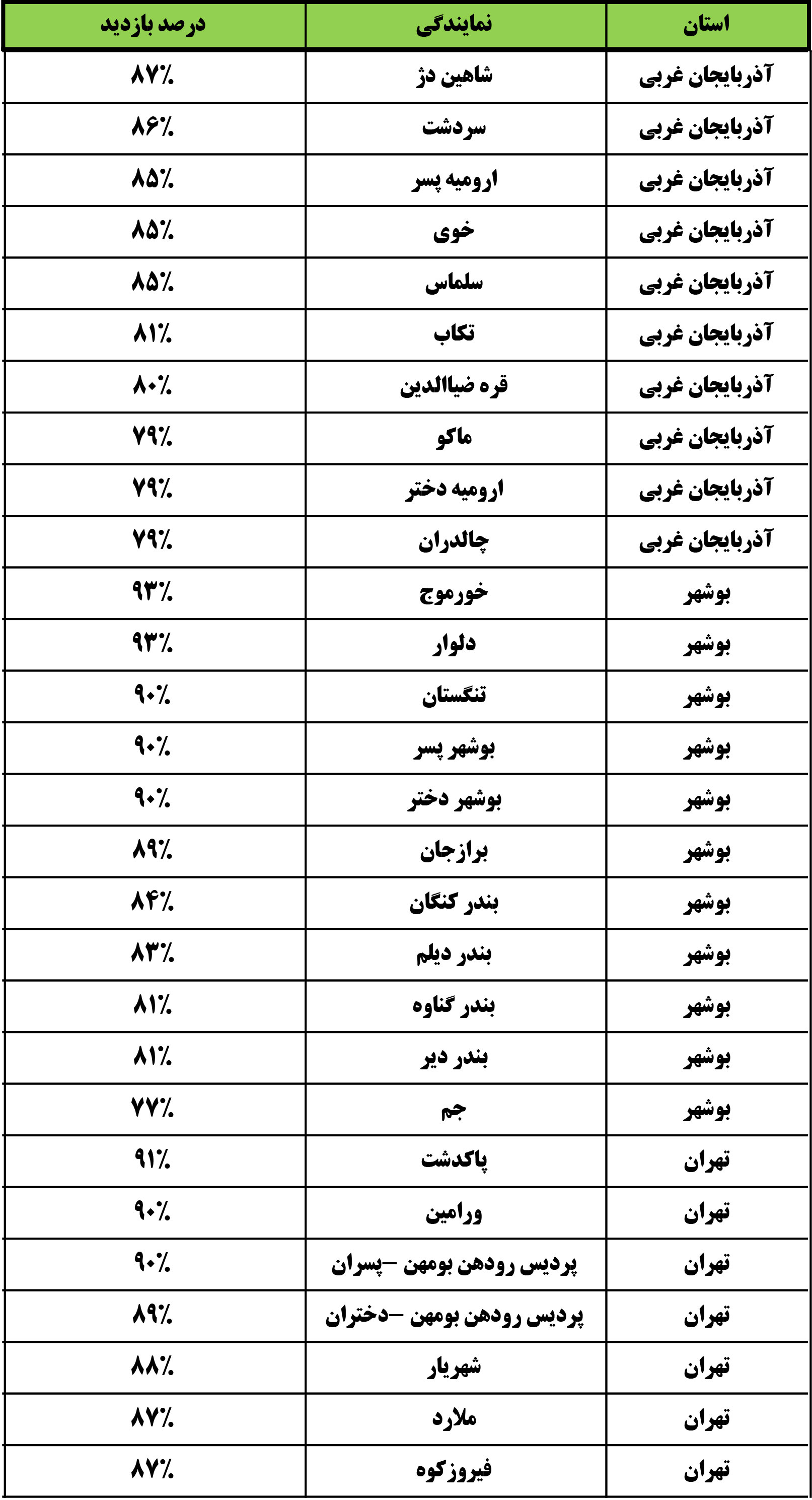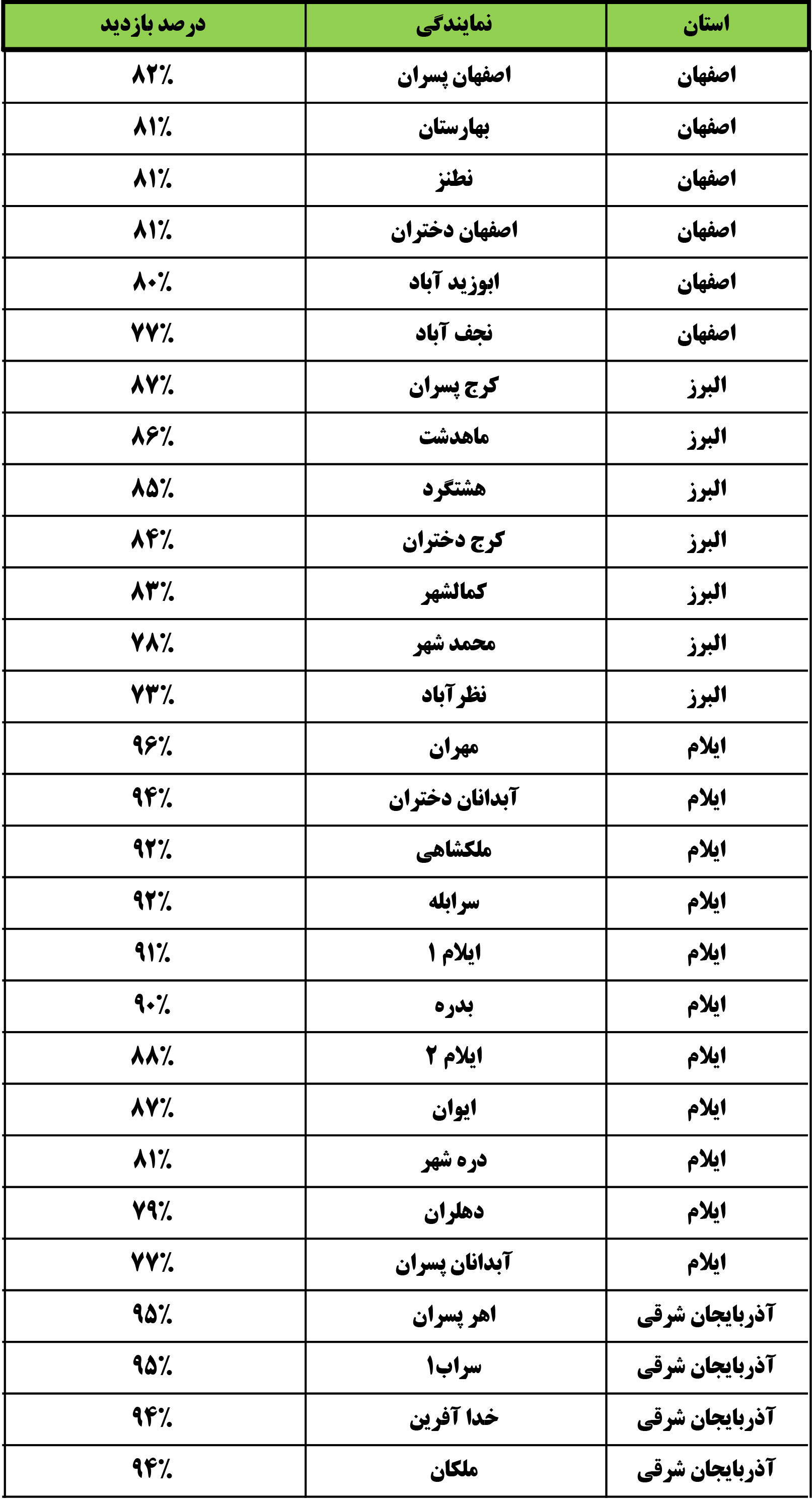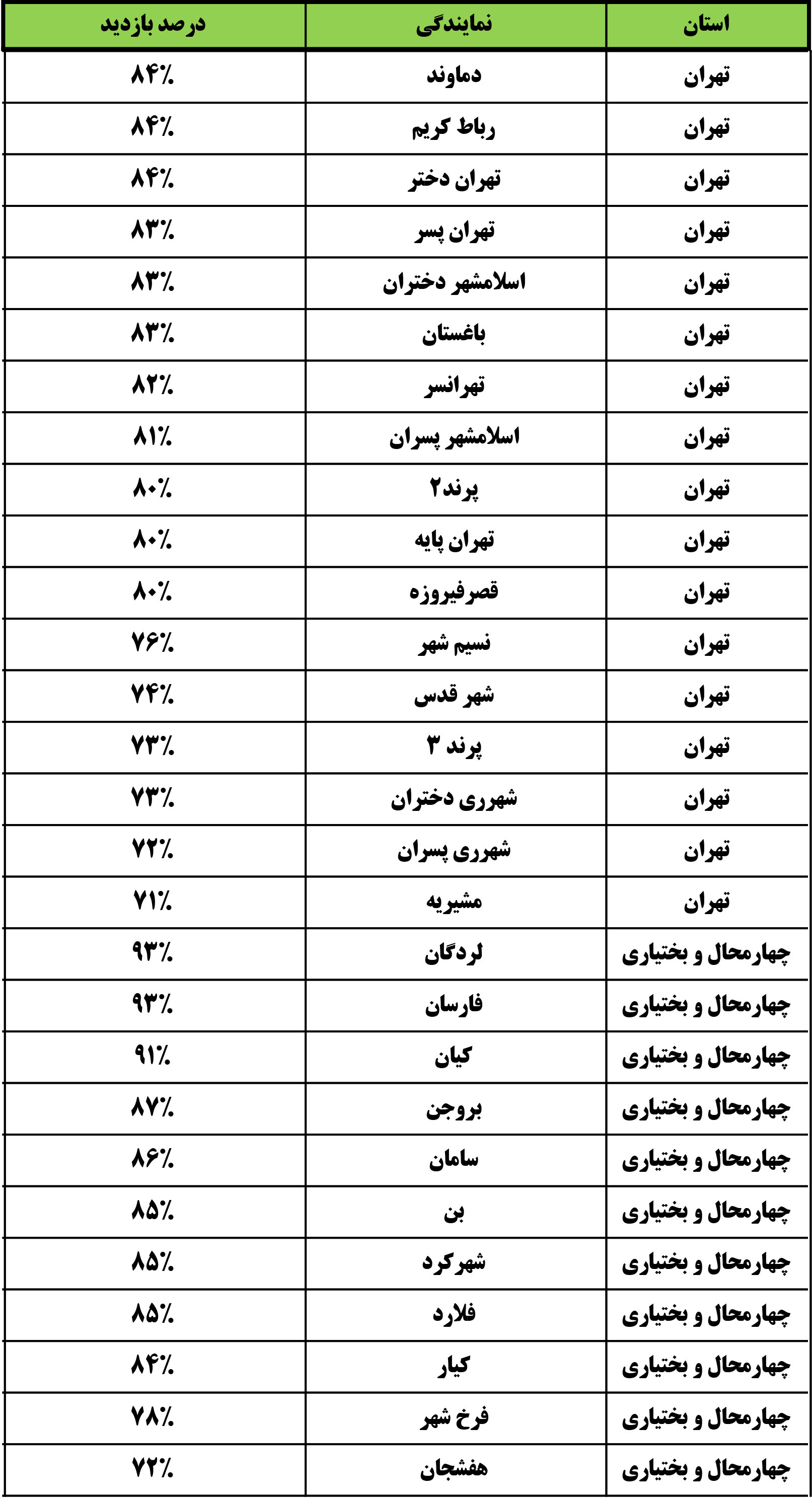 در ادامه می توانید درصد بازدید دانش آموزان نمایندگی های کانون از کارنامه های صفحه شخصی در آزمون 2 آبان را مشاهده کنید...این لیست ابتدا به صورت استان محور و سپس شهر مرتب شده است. ابتدا استان خود را پیدا کنید و سپس وضعیت شهرتان را مشاهده کنید...