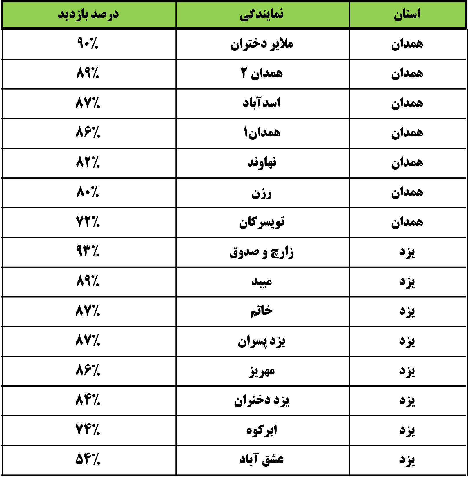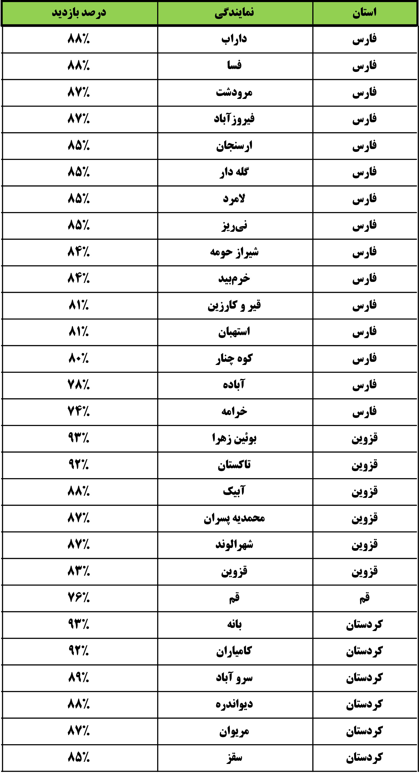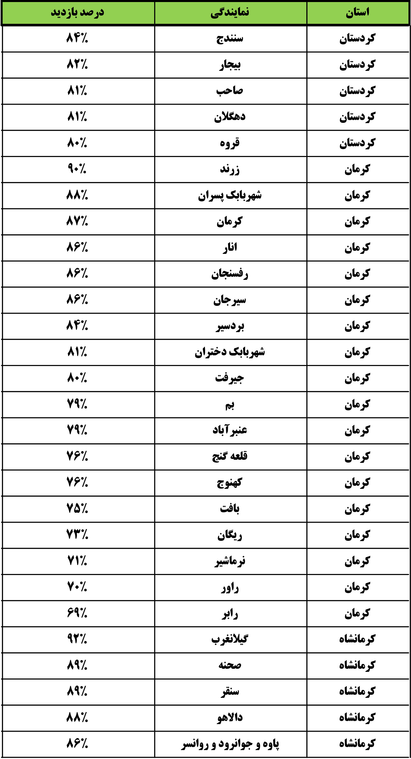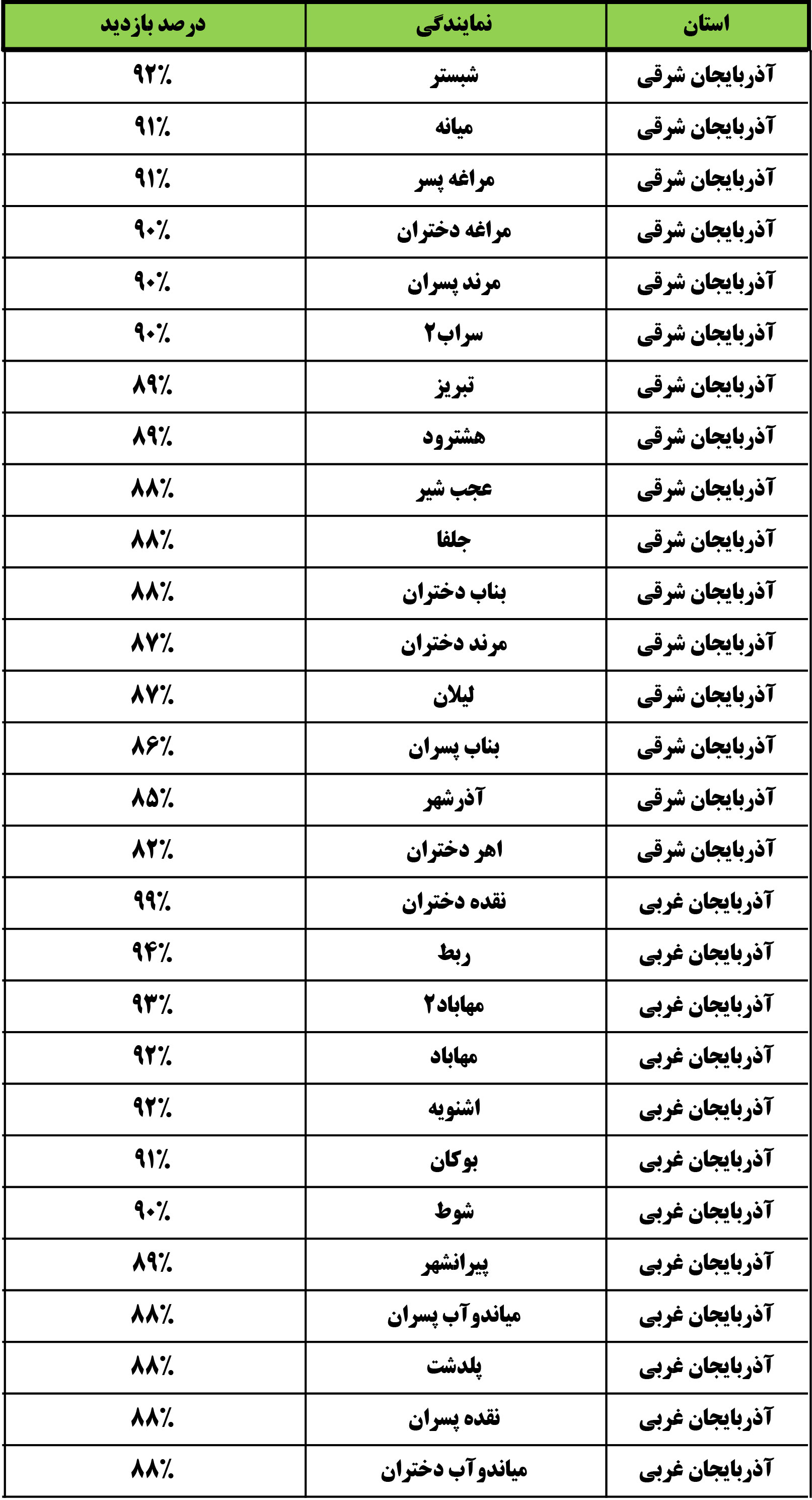 در ادامه می توانید درصد بازدید دانش آموزان نمایندگی های کانون از کارنامه های صفحه شخصی در آزمون 2 آبان را مشاهده کنید...این لیست ابتدا به صورت استان محور و سپس شهر مرتب شده است. ابتدا استان خود را پیدا کنید و سپس وضعیت شهرتان را مشاهده کنید...