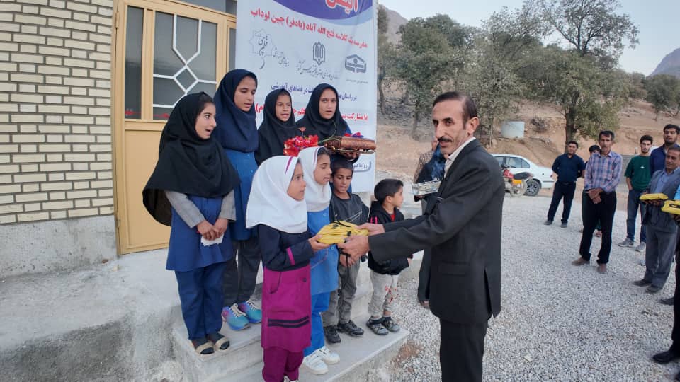 بریدن روبان افتتاح توسط دانشآموزان مدرسه