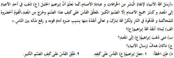 ر) أحضَروا إبراهيم (ع) فَقَذفوهُ فی النّارِ ، ثُمَّ أنقَذَهُ اللُه مِنها. (0.75) (امتحان نهایی عربی 3 شهریور 1401)