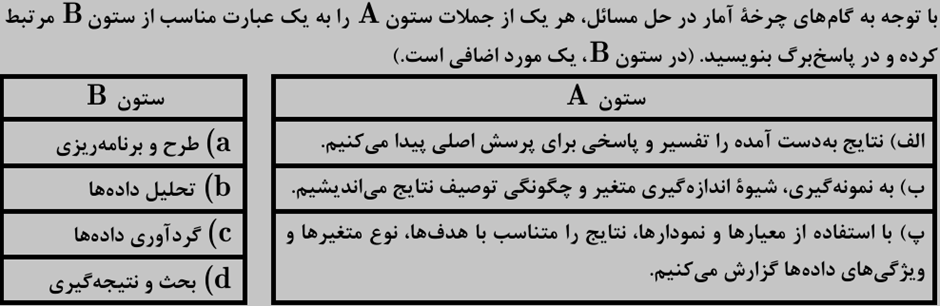 15) هرکدام از موارد زیر، مربوط به کدام گام از چرخه آمار است؟(1)