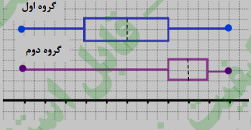 ج) دامنه میان چارکی کدام گروه بزرگتر است؟
