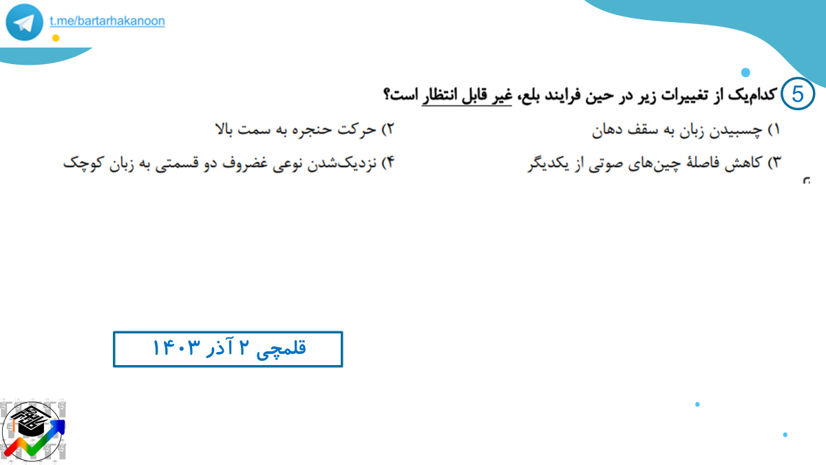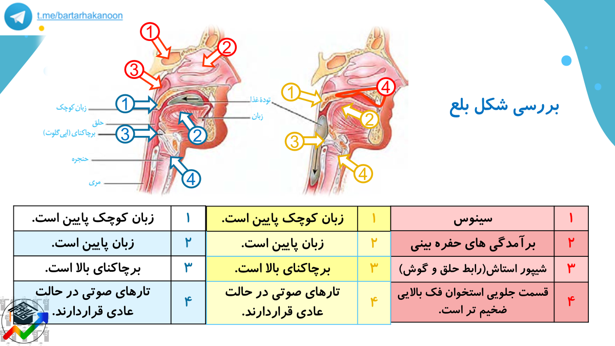 💣 نکته مهم: بلع بصورت ارادی ( فشار زبان) آغاز میشود و سپس بصورت غیر ارادی ادامه میابد.