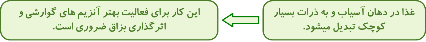 ✅ در گوارش مکانیکی مواد با اعمال تغییرات فیزیکی به اندازه های کوچک تر خرد میشوند .